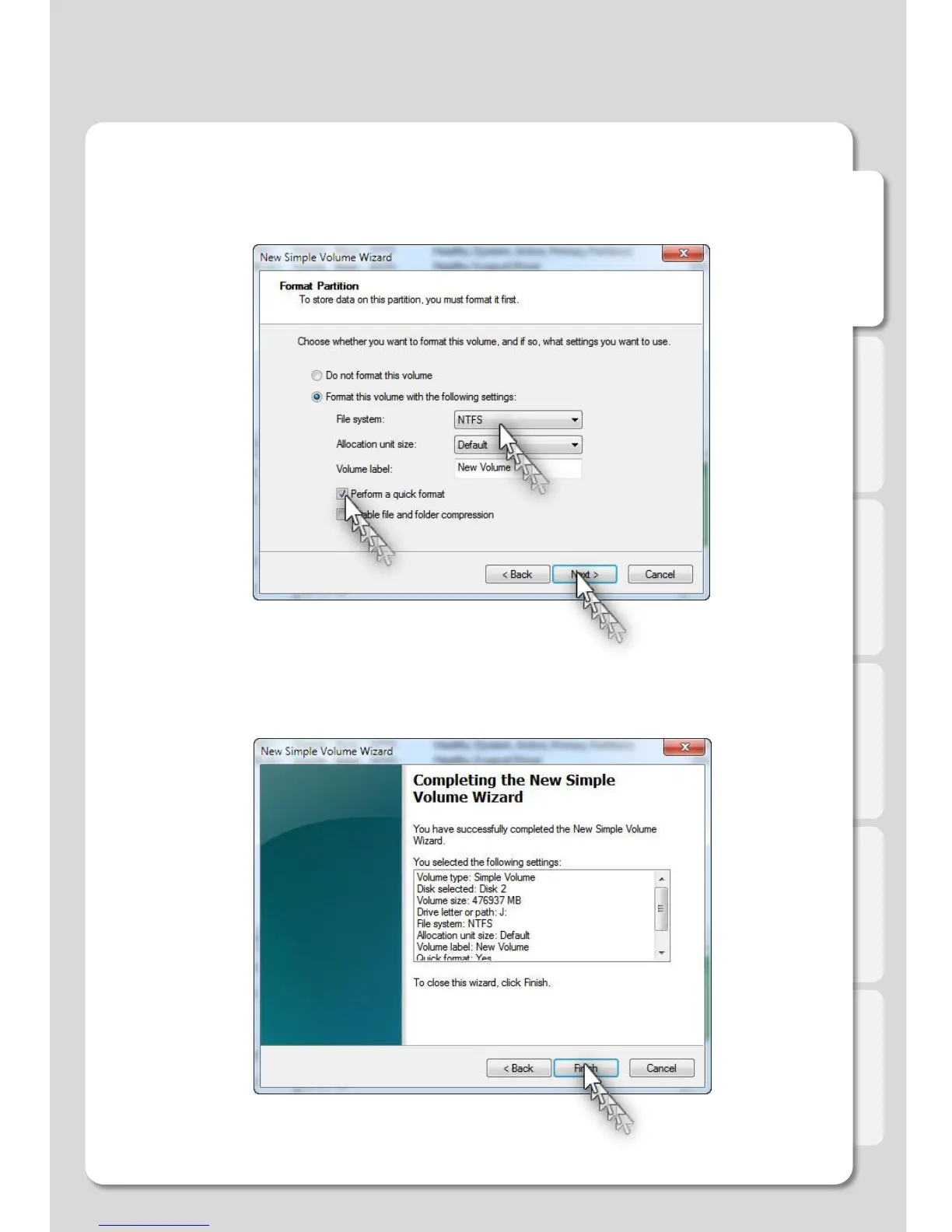 10. Select the NTFS File System and check the Perform a Quick Format.