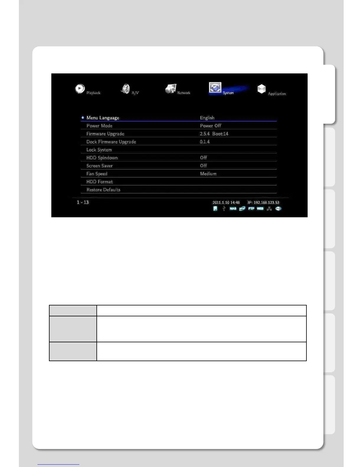 firmware file from HDD or USB storage device. After the upgrade procedure is complete the system will reboot.