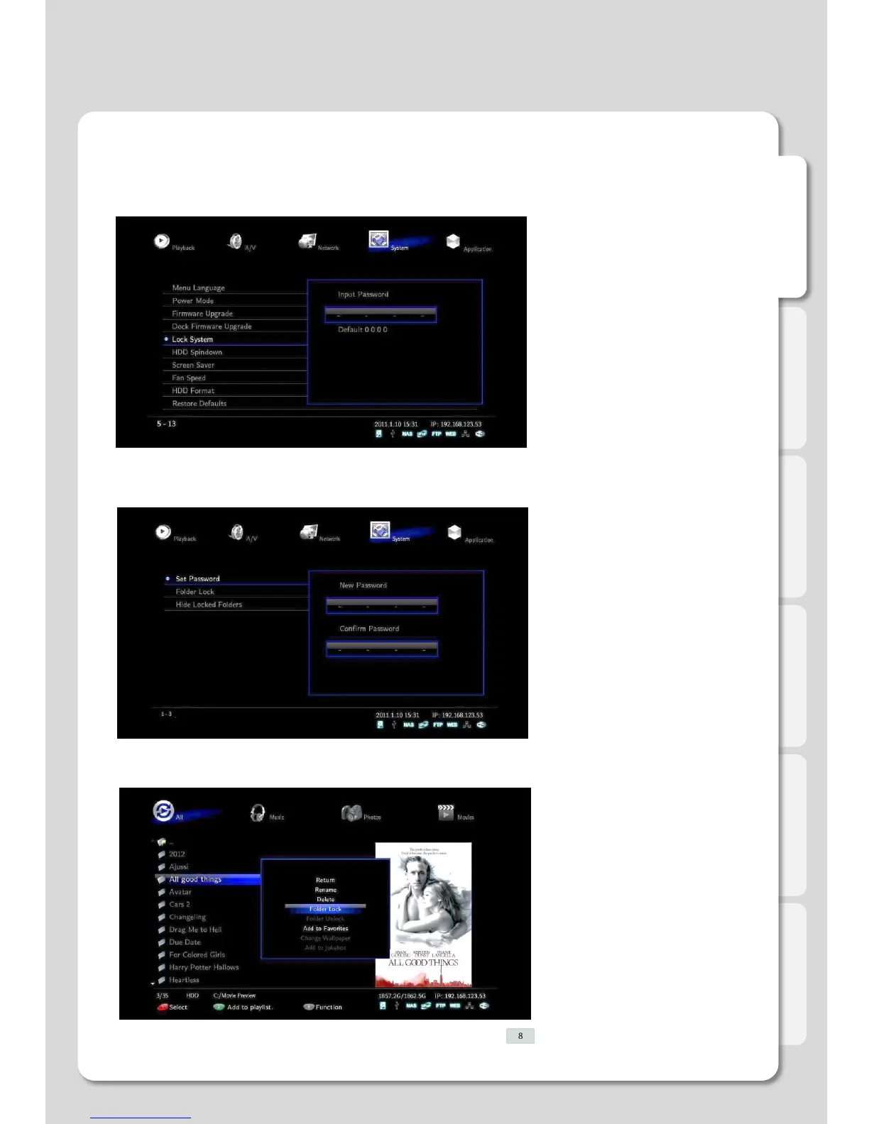 [Setting → System → Lock System → 0000(Default) → Set Password]