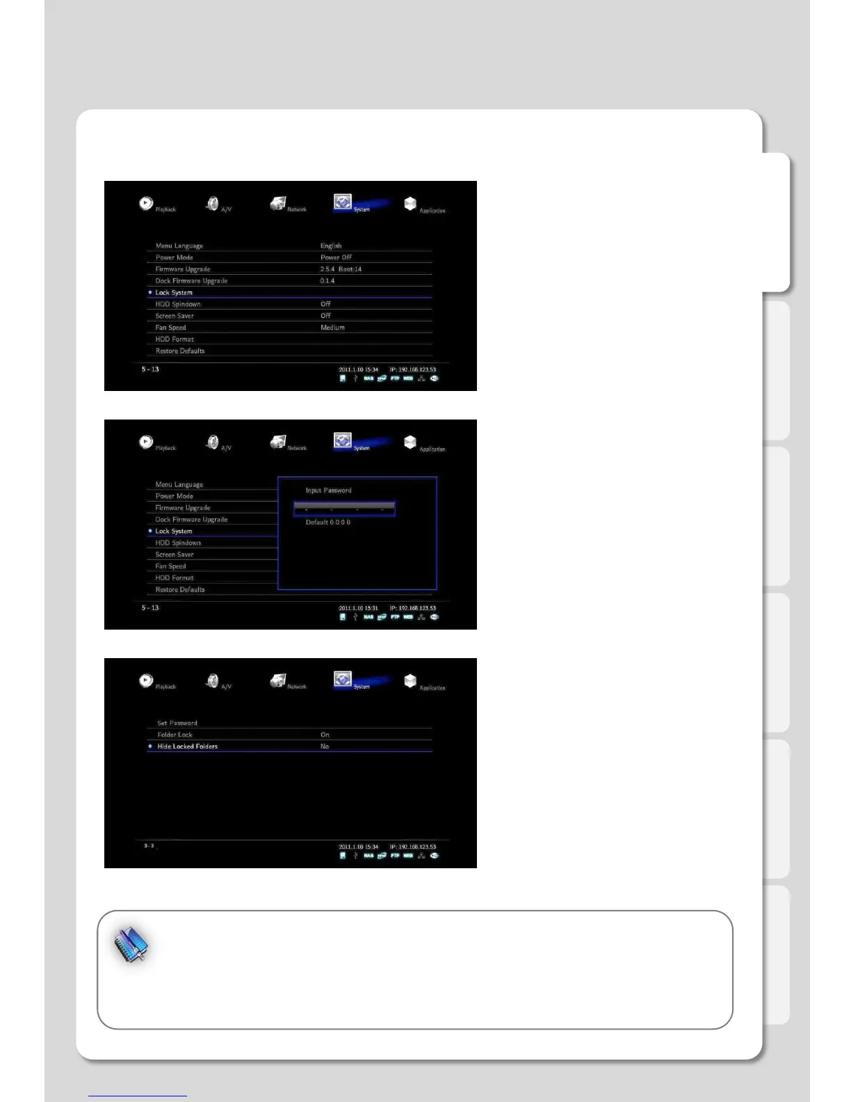 1. Select Setting System Lock System