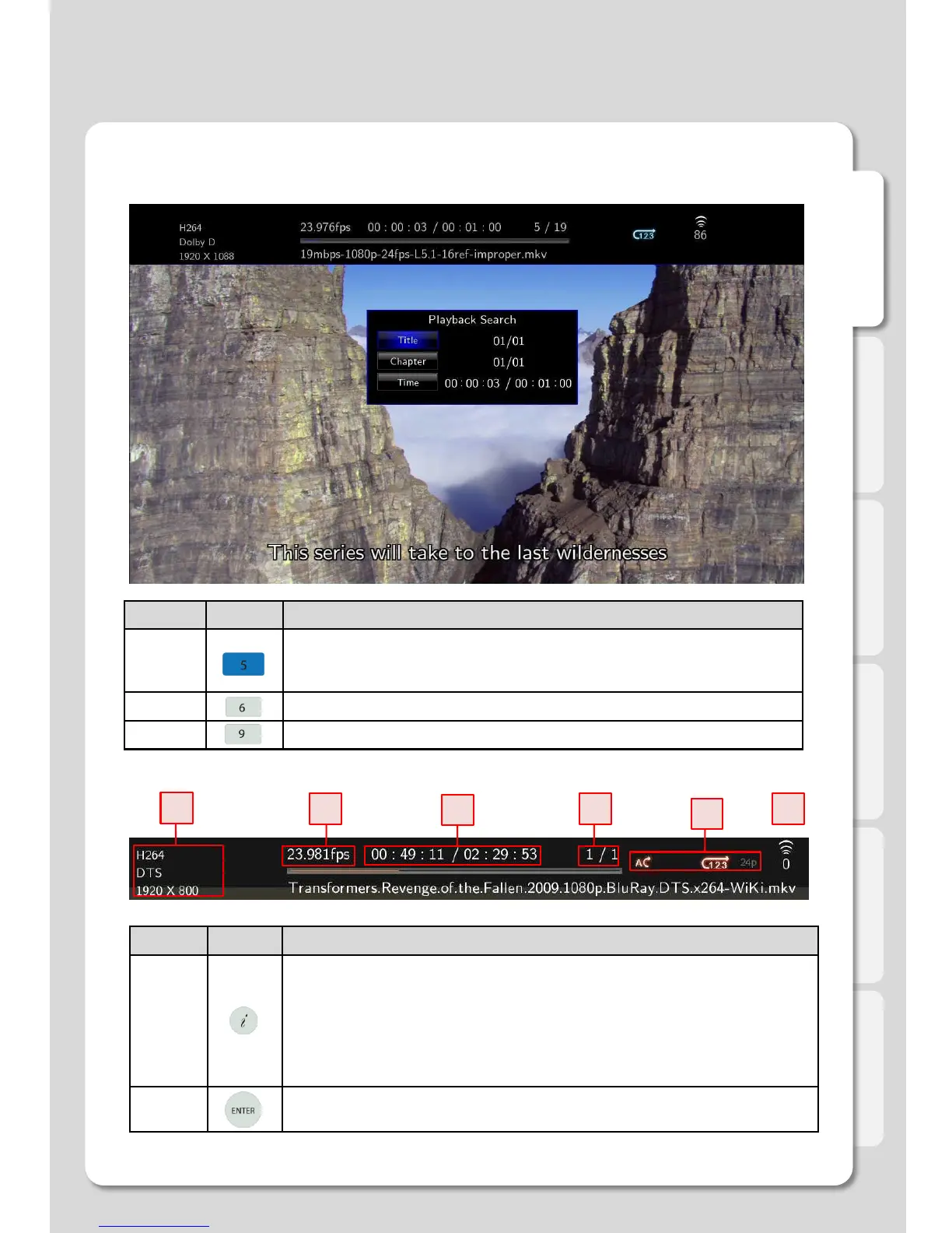 5. It supports current status information of “Repeat/ A-B Repeat/Shuffle/24P film”.