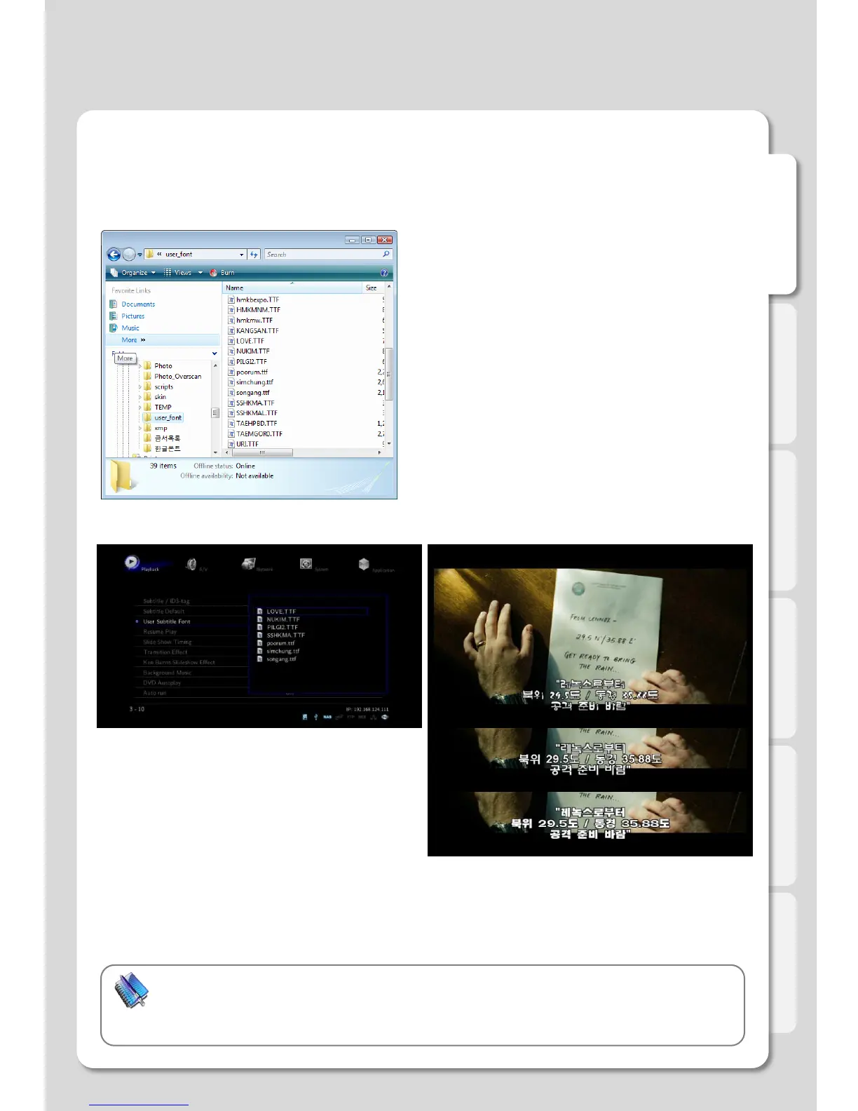 3. Press [Setting] – [Playback] – [User Subtitle Font]