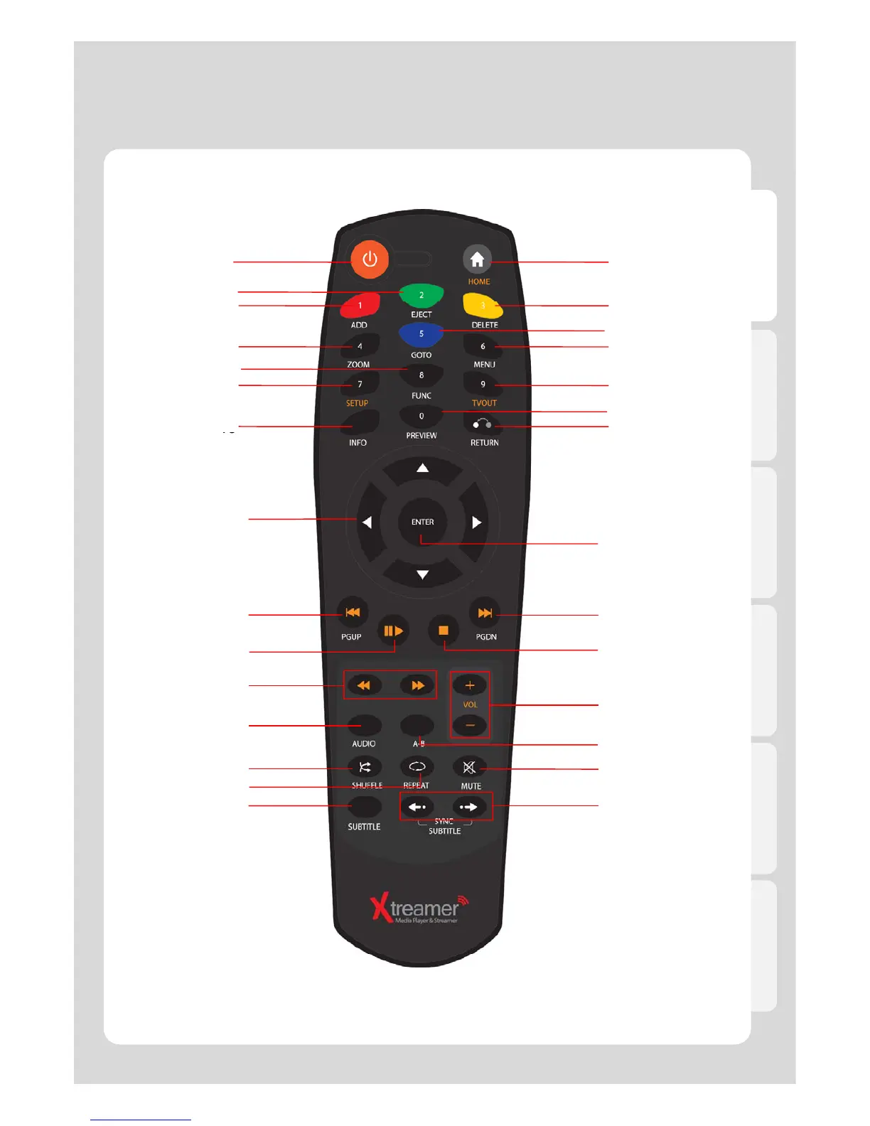 Xtreamer media player - Remote Control Functions