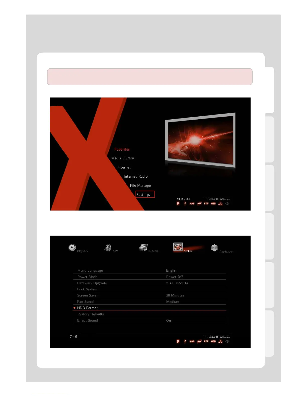 1. Insert HDD you want to format into Xtreamer, and then reboot.