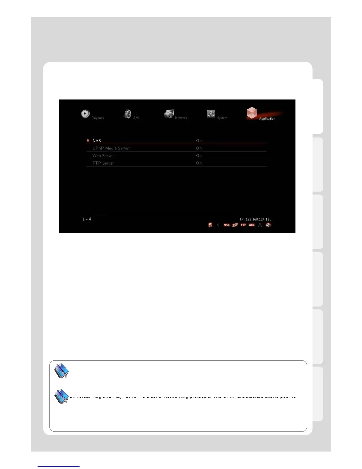 Media Center This feature supports UPnP Media Server and NFS client functions