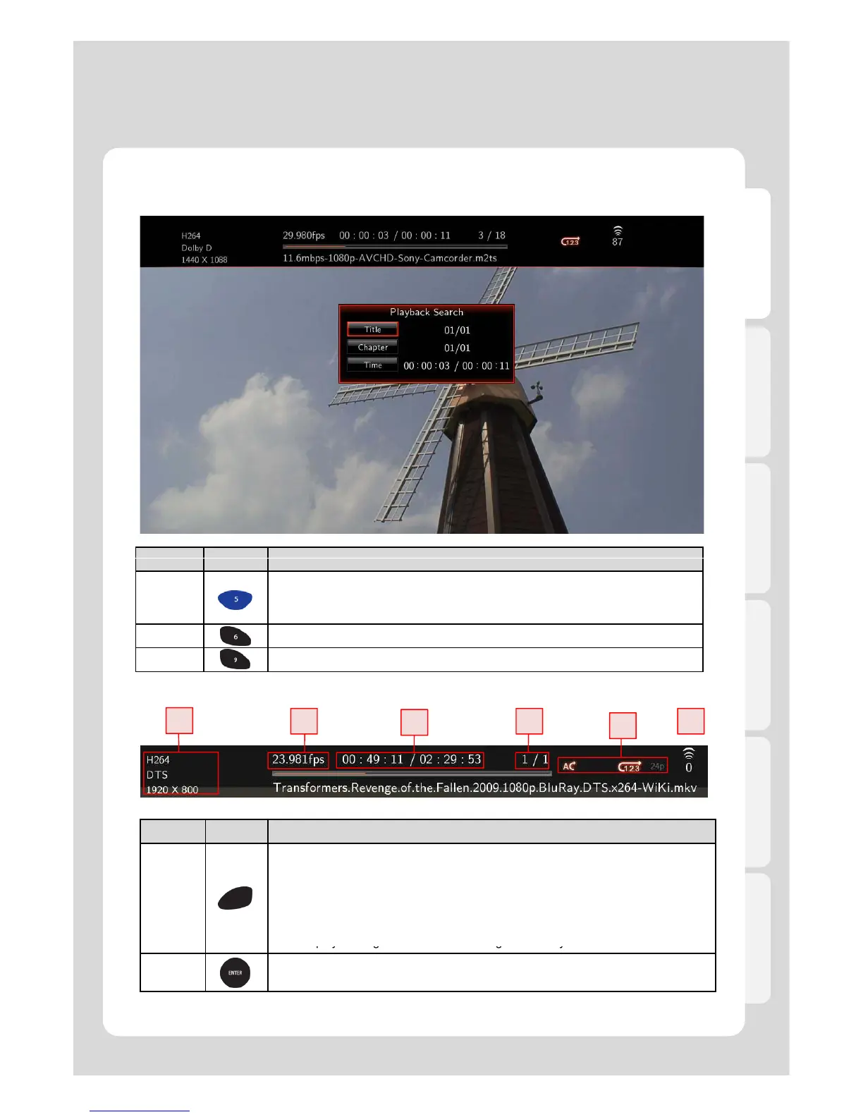 5. It supports current status information of “Repeat/ A-B Repeat/Shuffle/24P film”.