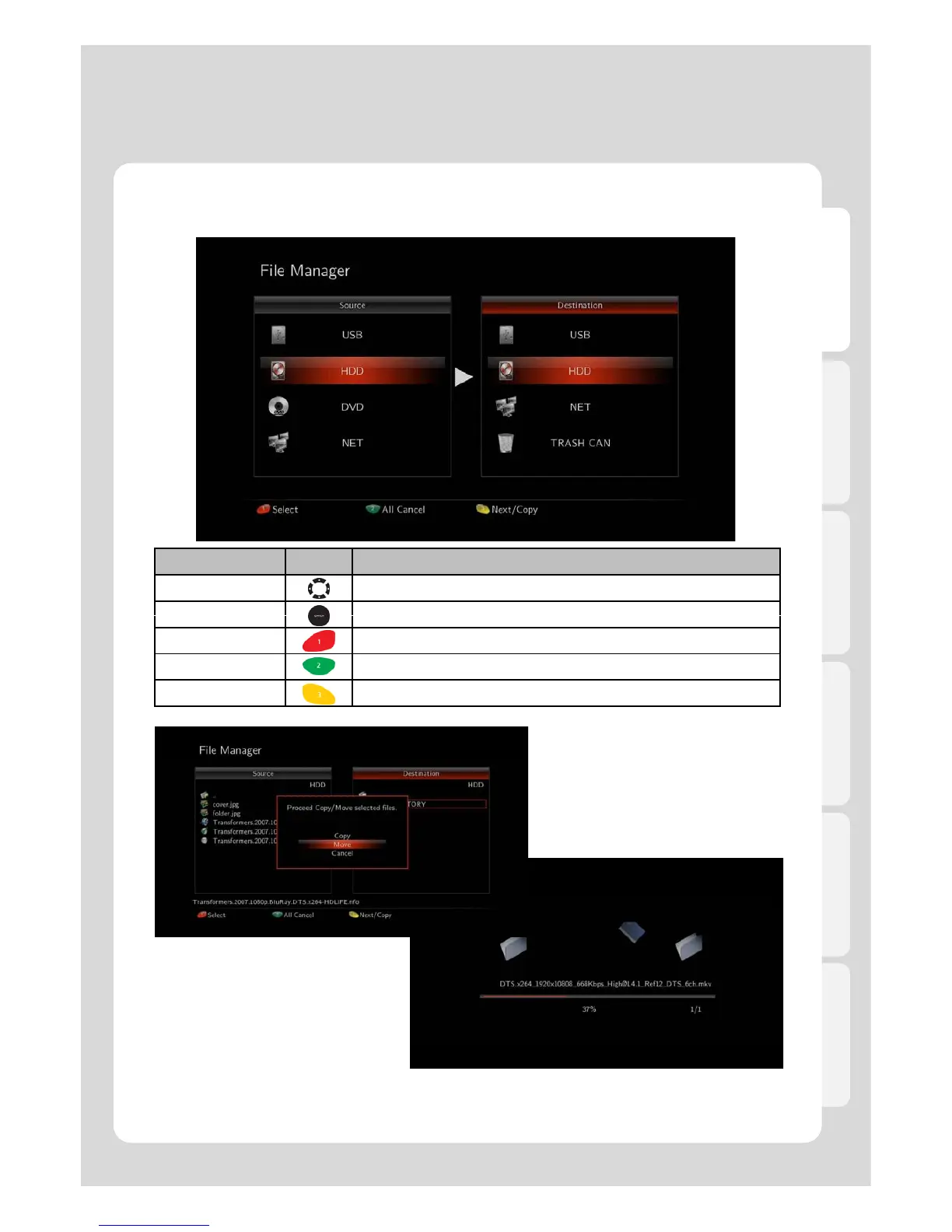 Xtreamer has a built in file manager that allows you to easily copy files to and from any USB attached drive;