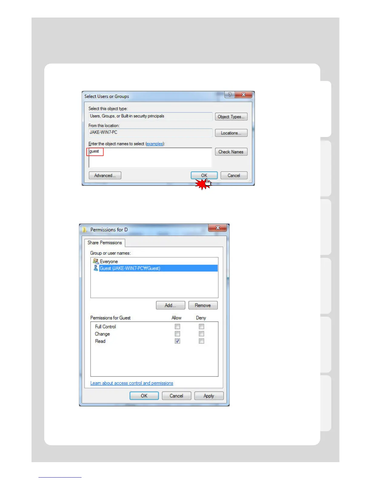 9. Click [OK] - [Apply] – [OK] in order to confirm if “Guest” account is added or not.