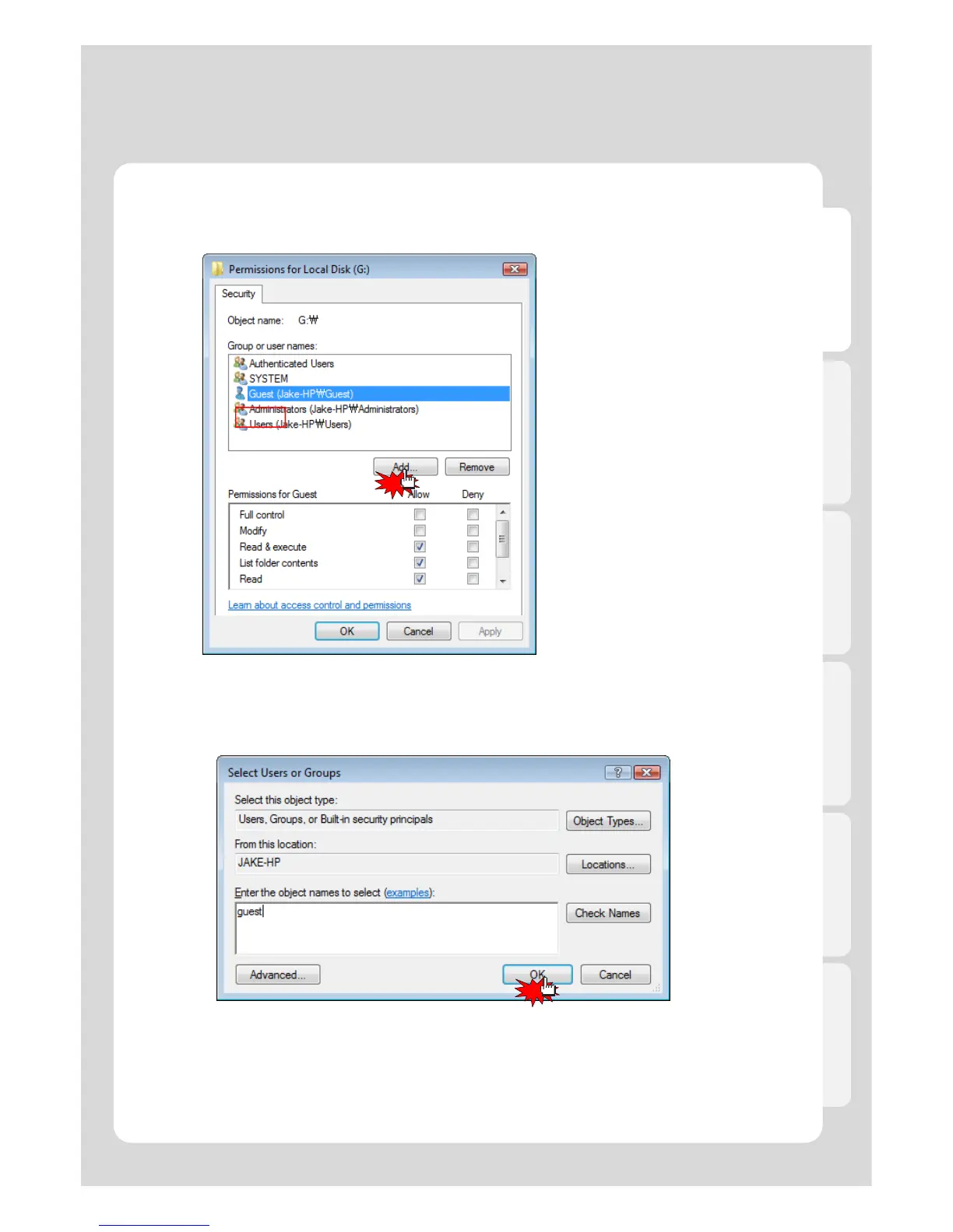 13. Click [Add] if there is no “Guest” account.