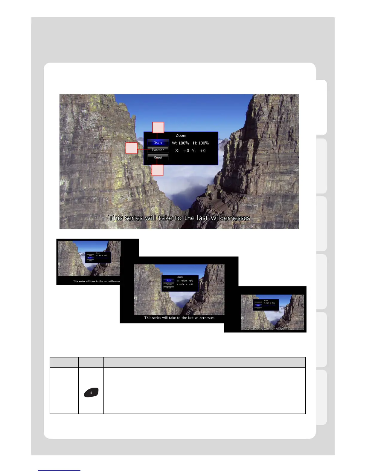 2. Position – The Arrow Keys support adjusting position of movie screen after