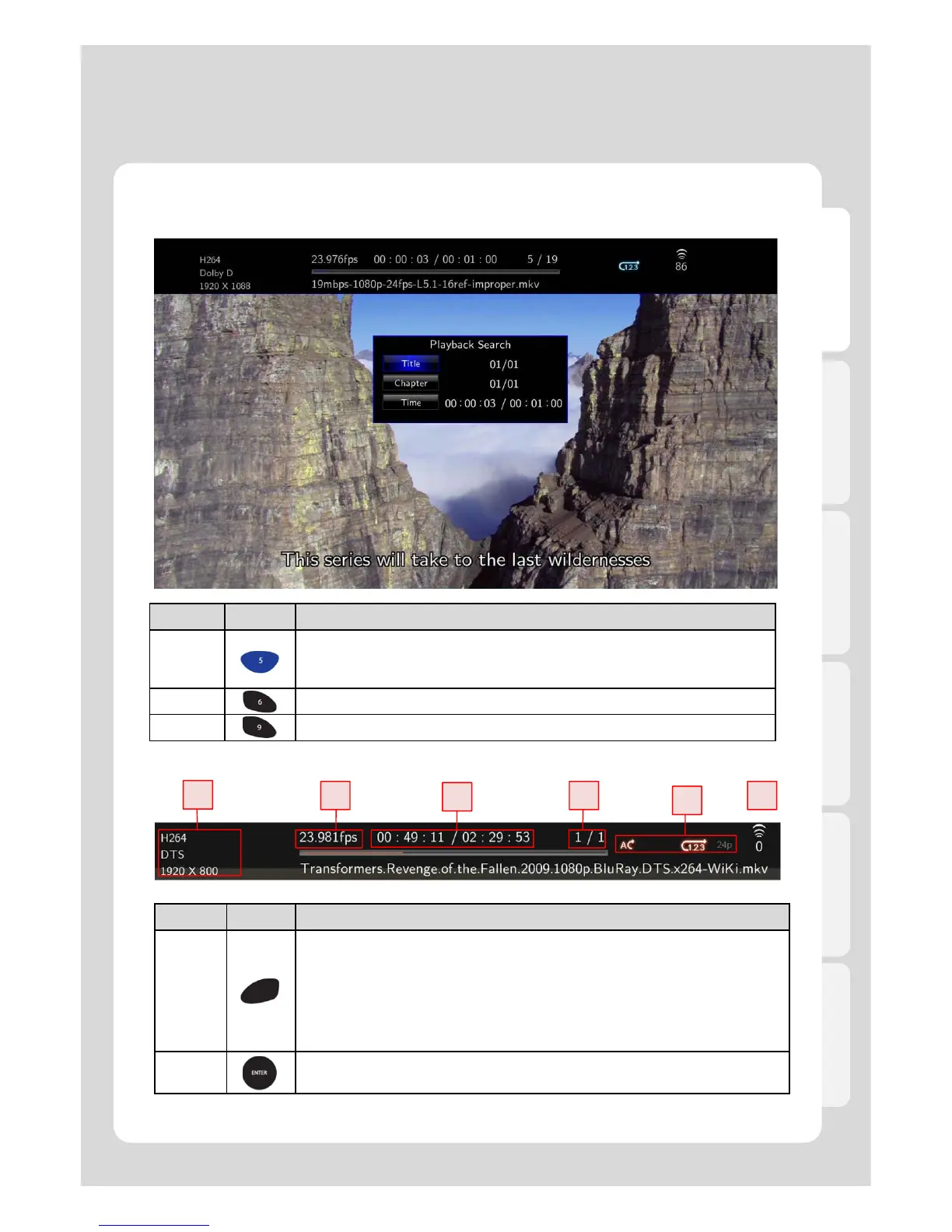 5. It supports current status information of “Repeat/ A-B Repeat/Shuffle/24P film”.