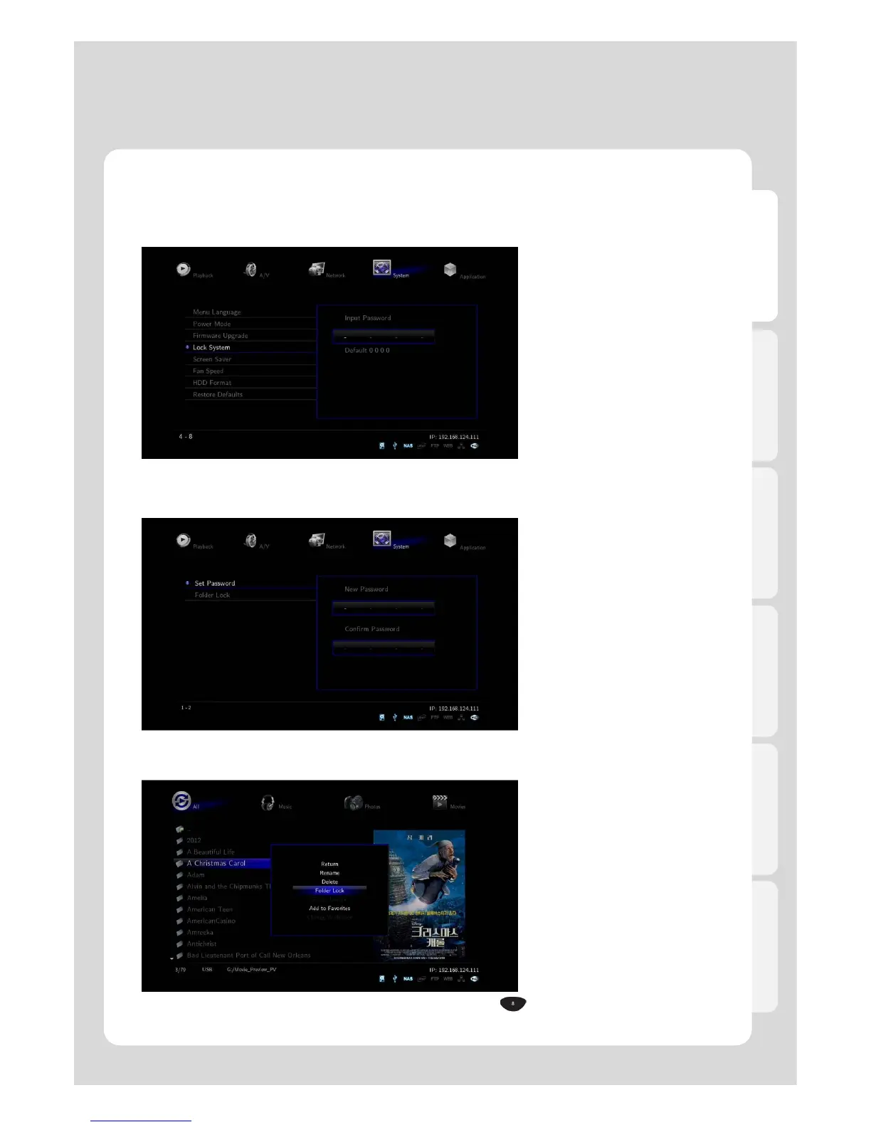 [Setting → System → Lock System → 0000(Default) → Set Password]