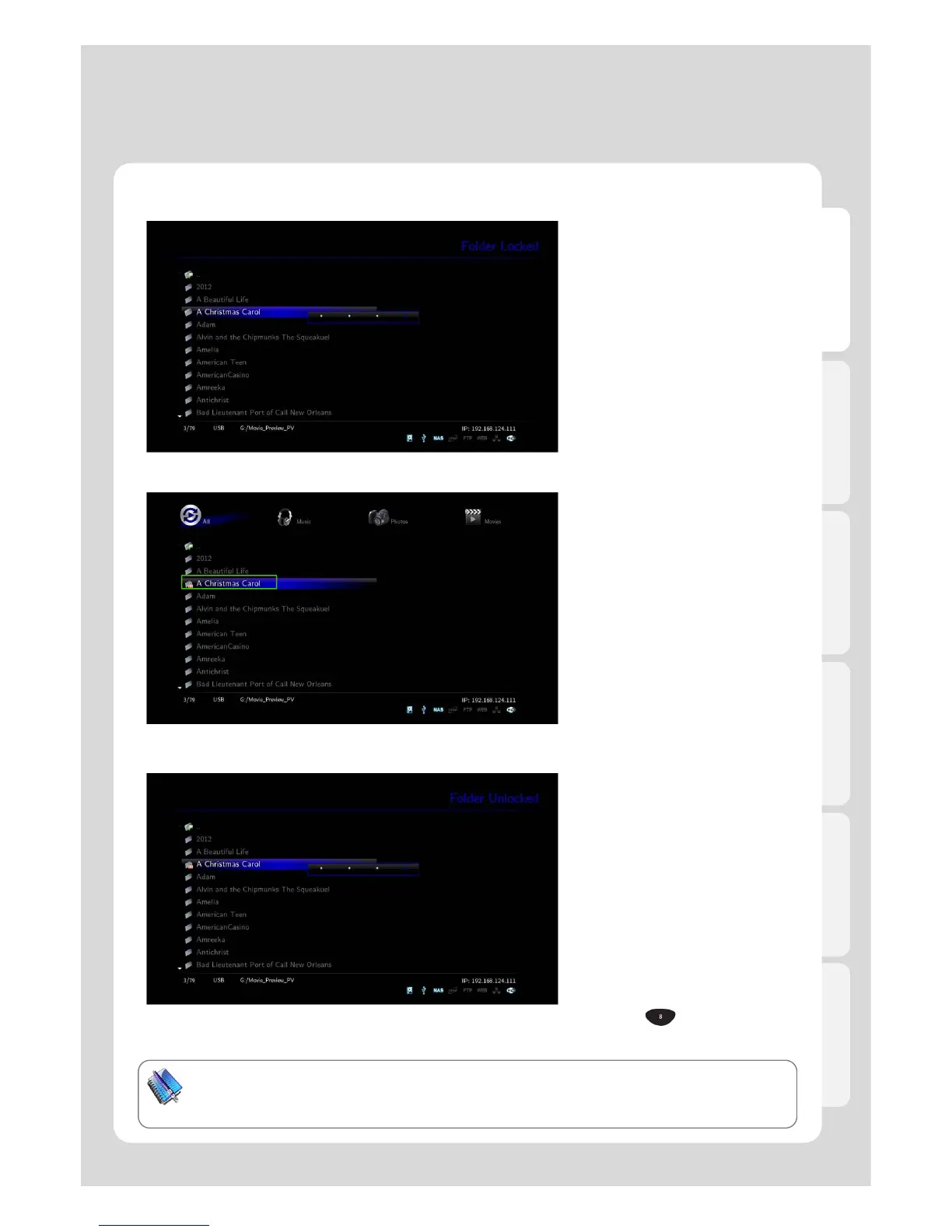 6. In order to unlock the folder, you will place the cursor on the locked folder, pressing [FUNC] button, and