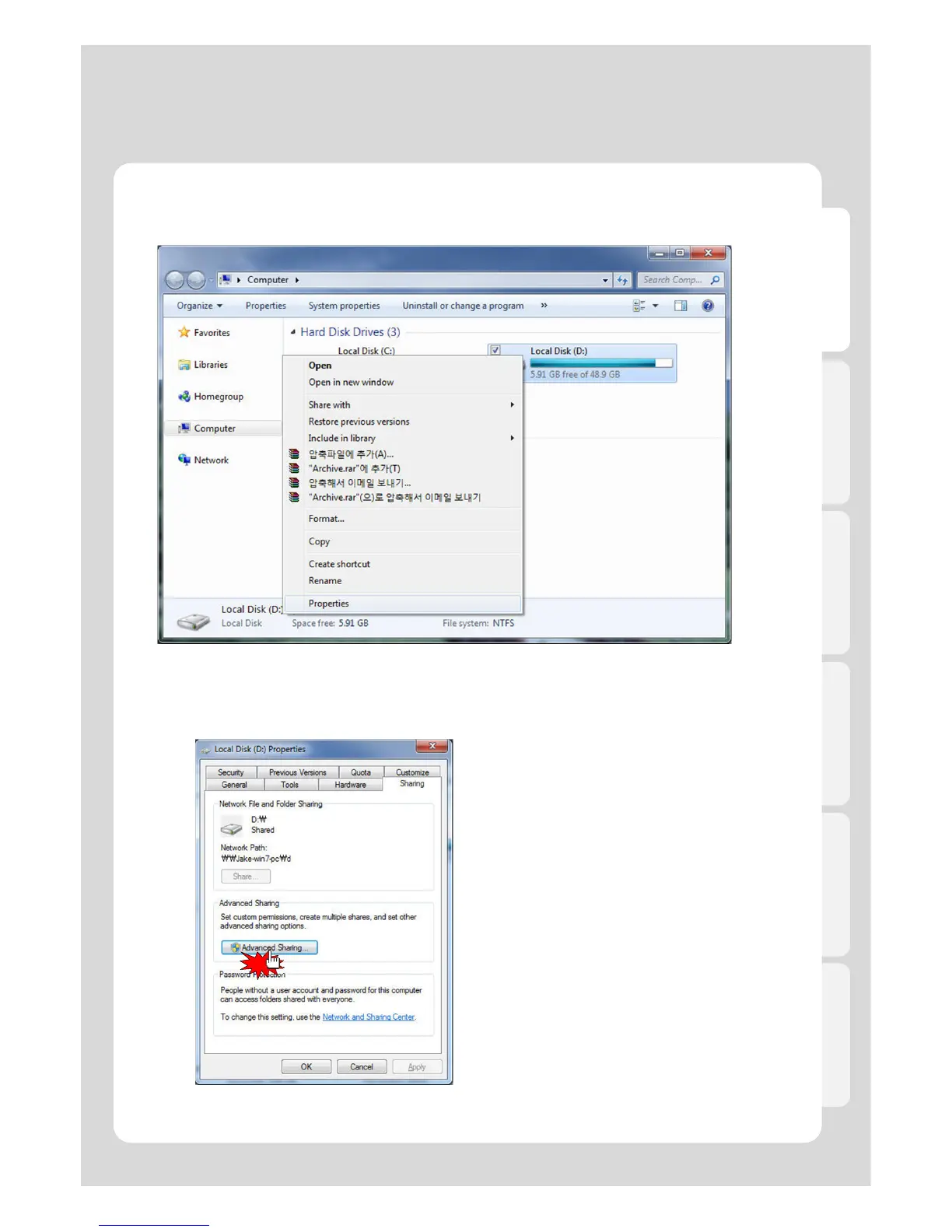 5. Click [Sharing] on tap menu, and then click [Advanced Sharing…].