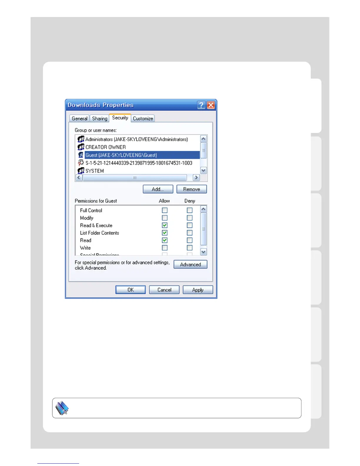 9. As you check “Guest” account added in Security tap, setting will be completed by [Apply] – [OK].