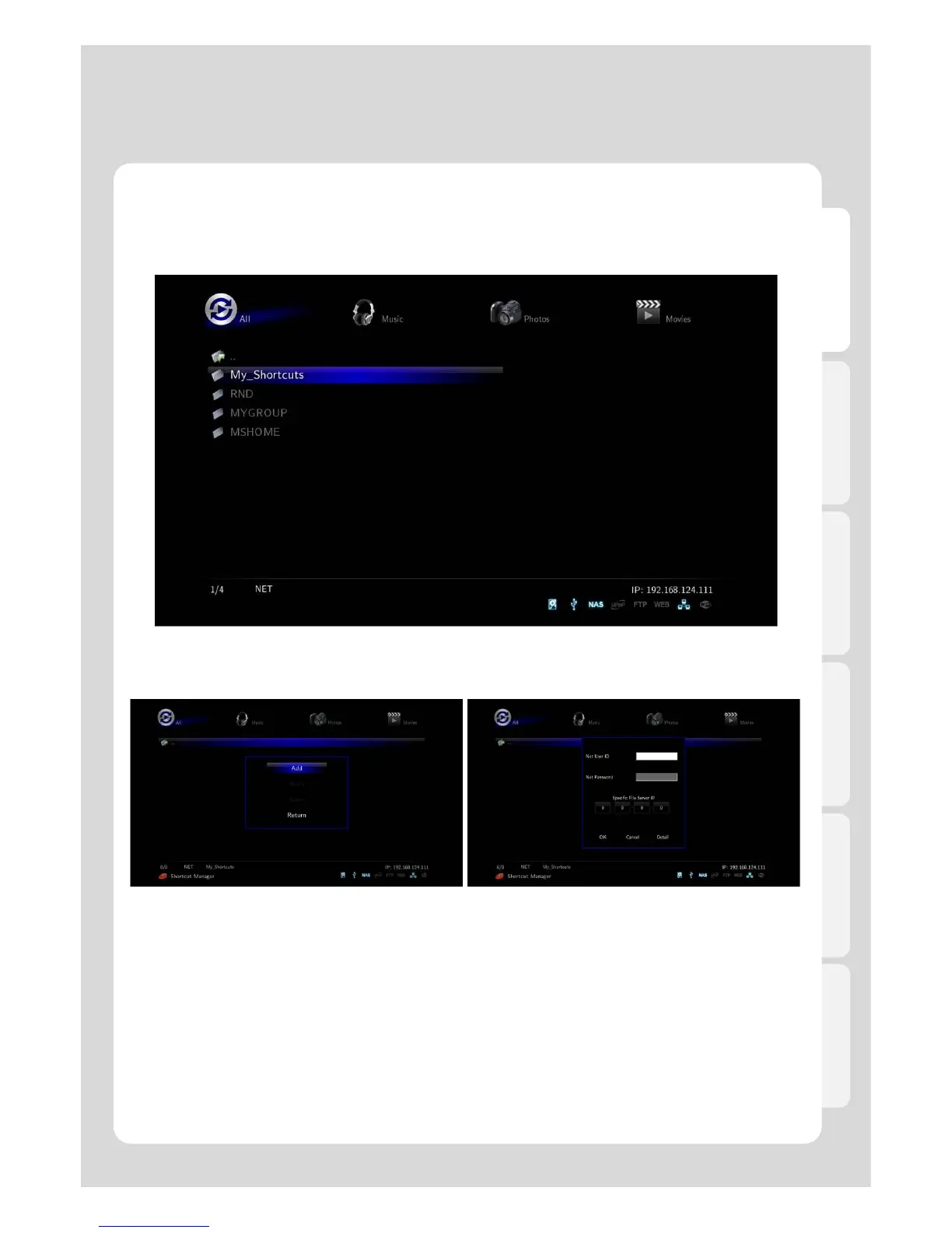 1. Access to menu by selecting [Media Library] – [NET] – [My_Shorcuts].