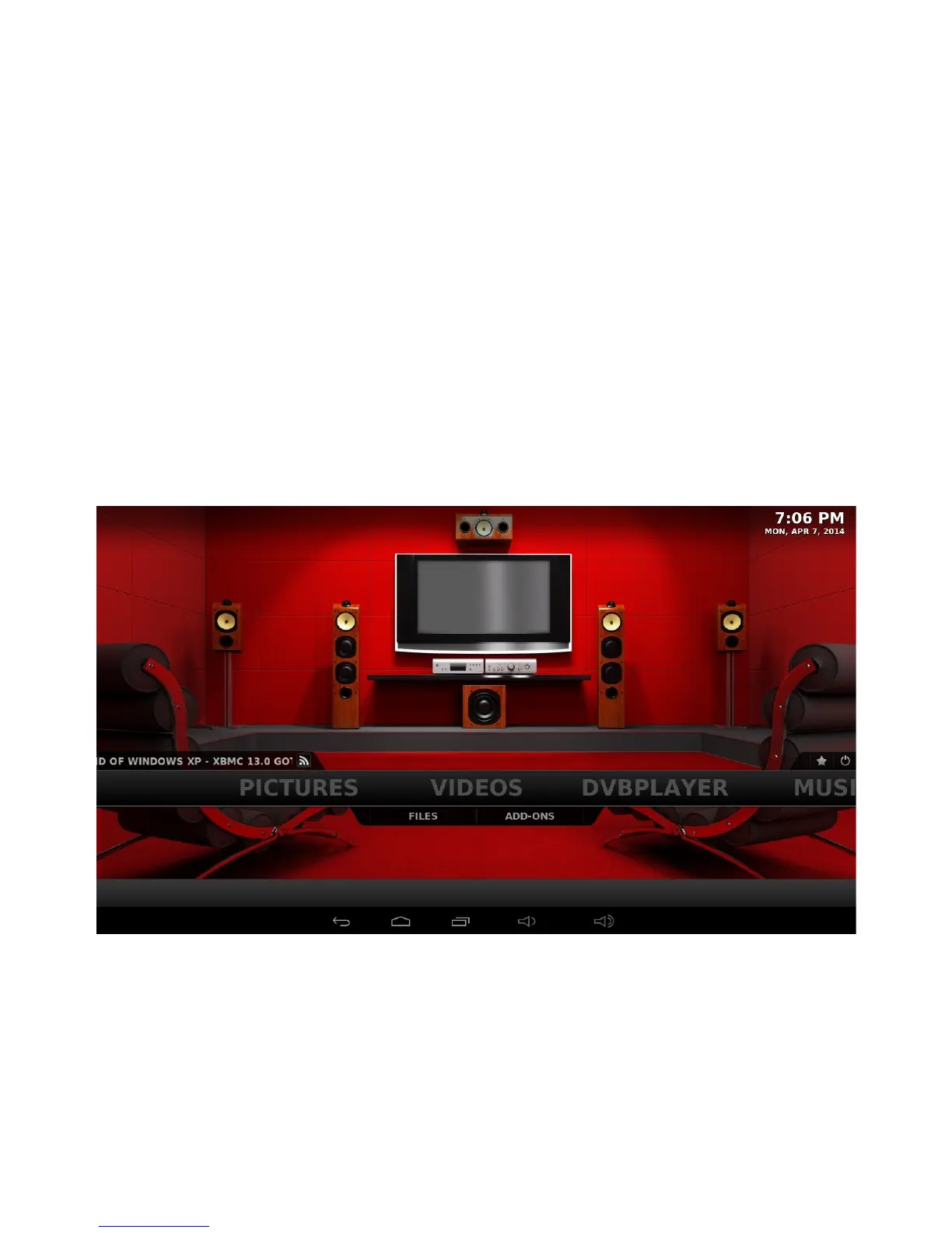 KODI main screen provides an easy access to the most functions of the application (such as