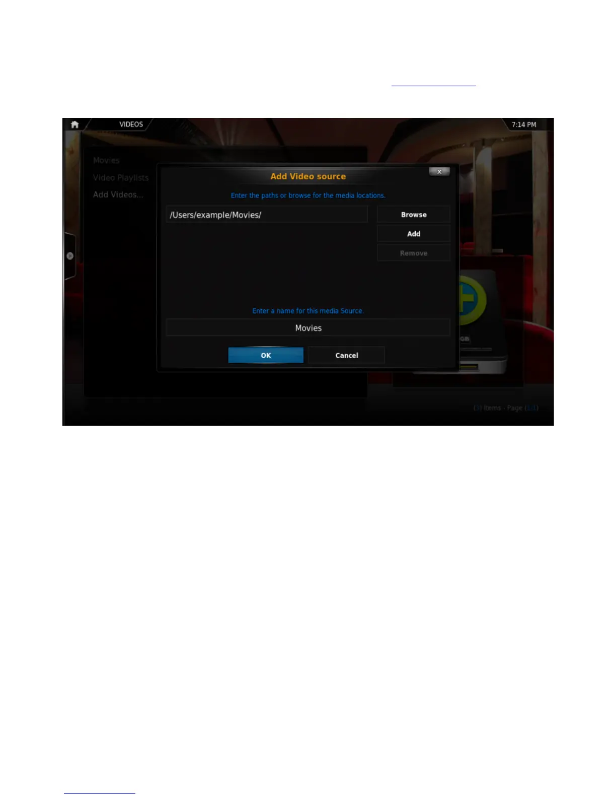 Step 5:Name this Video Source however you like. If it is a movie folder, you will probably want to