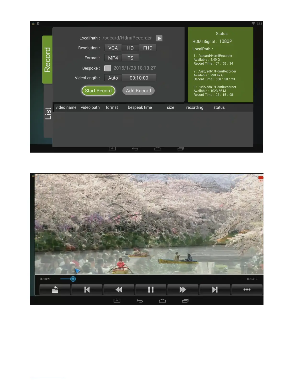 The LIST tab gives you access to all your recorded les. Press MENU button to rename les or to
