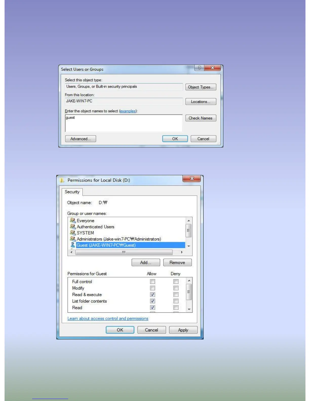 13. Complete setup as confirming Guest” account added by selecting *OK+ [Apply] [OK]
