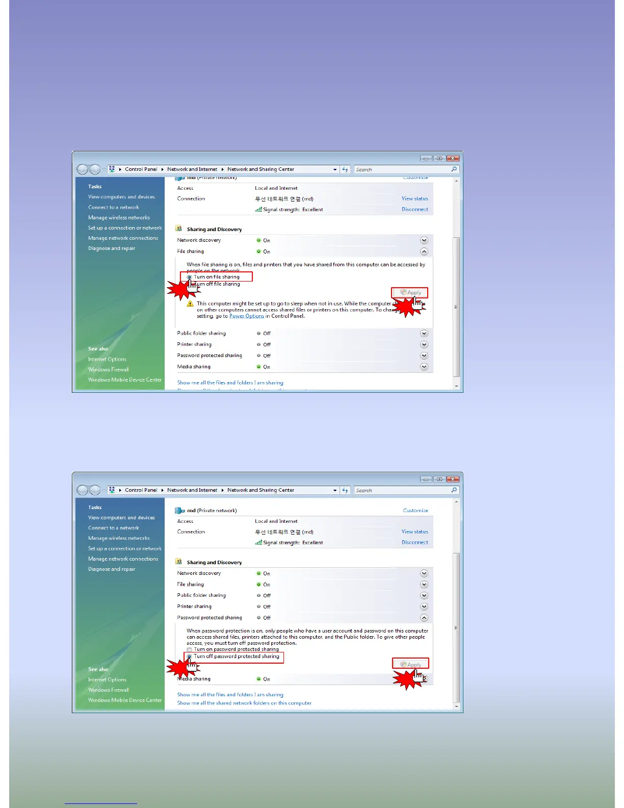 Click [Password protected sharing] [Turn off password protected sharing], and then click