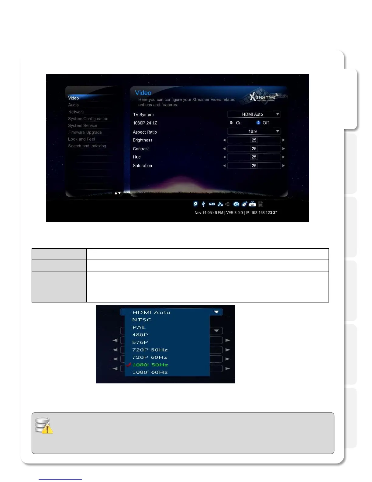 only available when Xtreamer is connected using a HDMI cable to a TV that supports 24Hz frame rate.