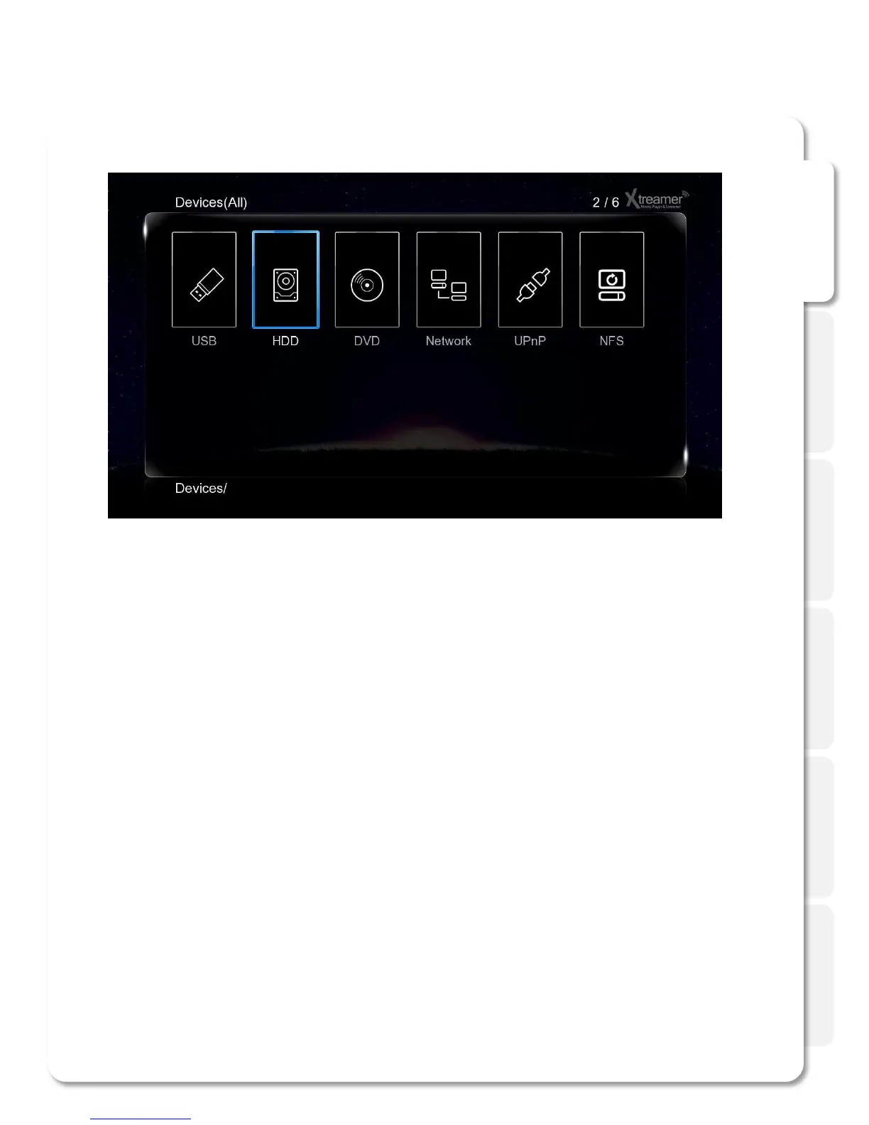 Cursor keys – use them to navigate the Media sources.