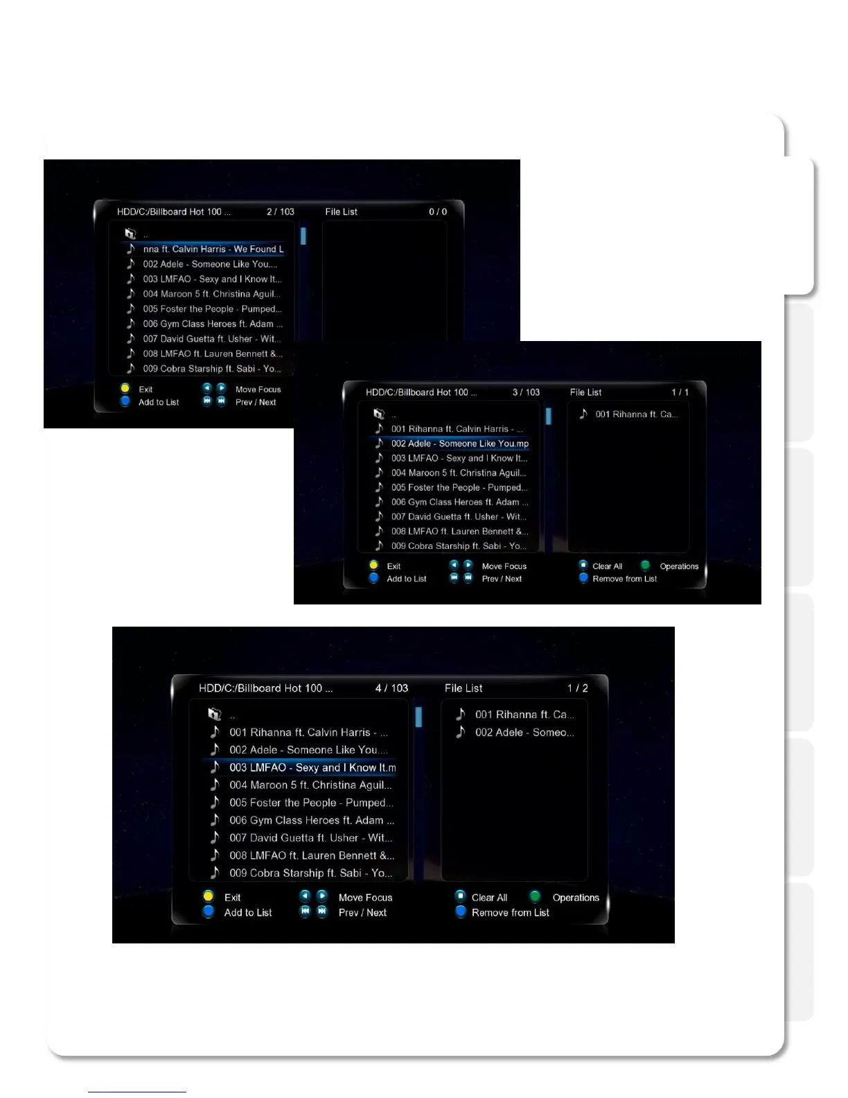Use the BLUE button to add files to the playlist (or to remove from the list)