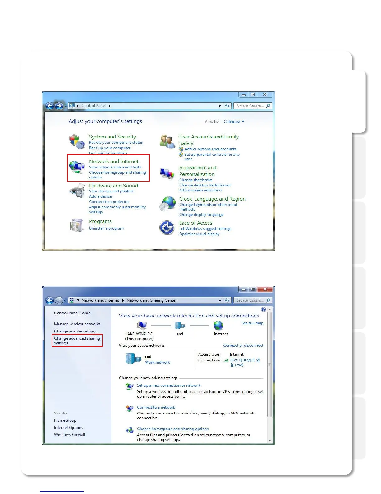 2. Click [Change advanced sharing settings] on the right side of the screen after appearing Network and