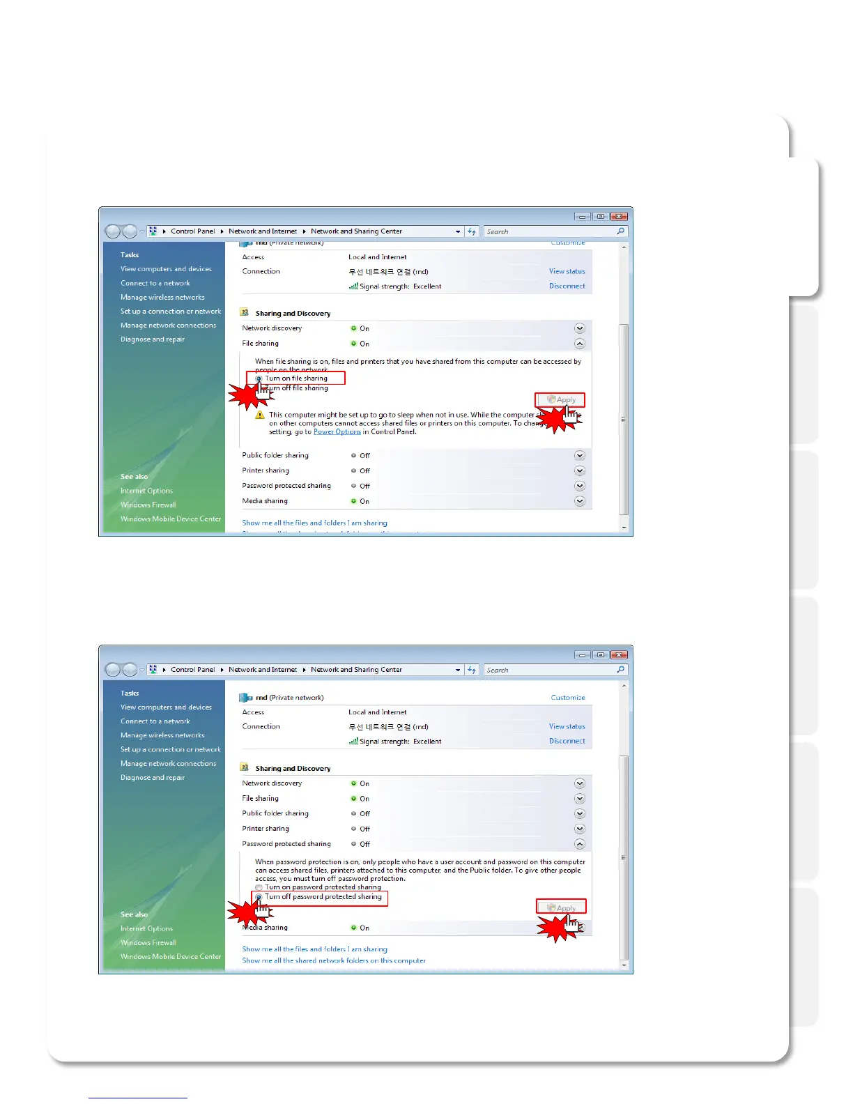 Click [Password protected sharing] [Turn off password protected sharing], and then click