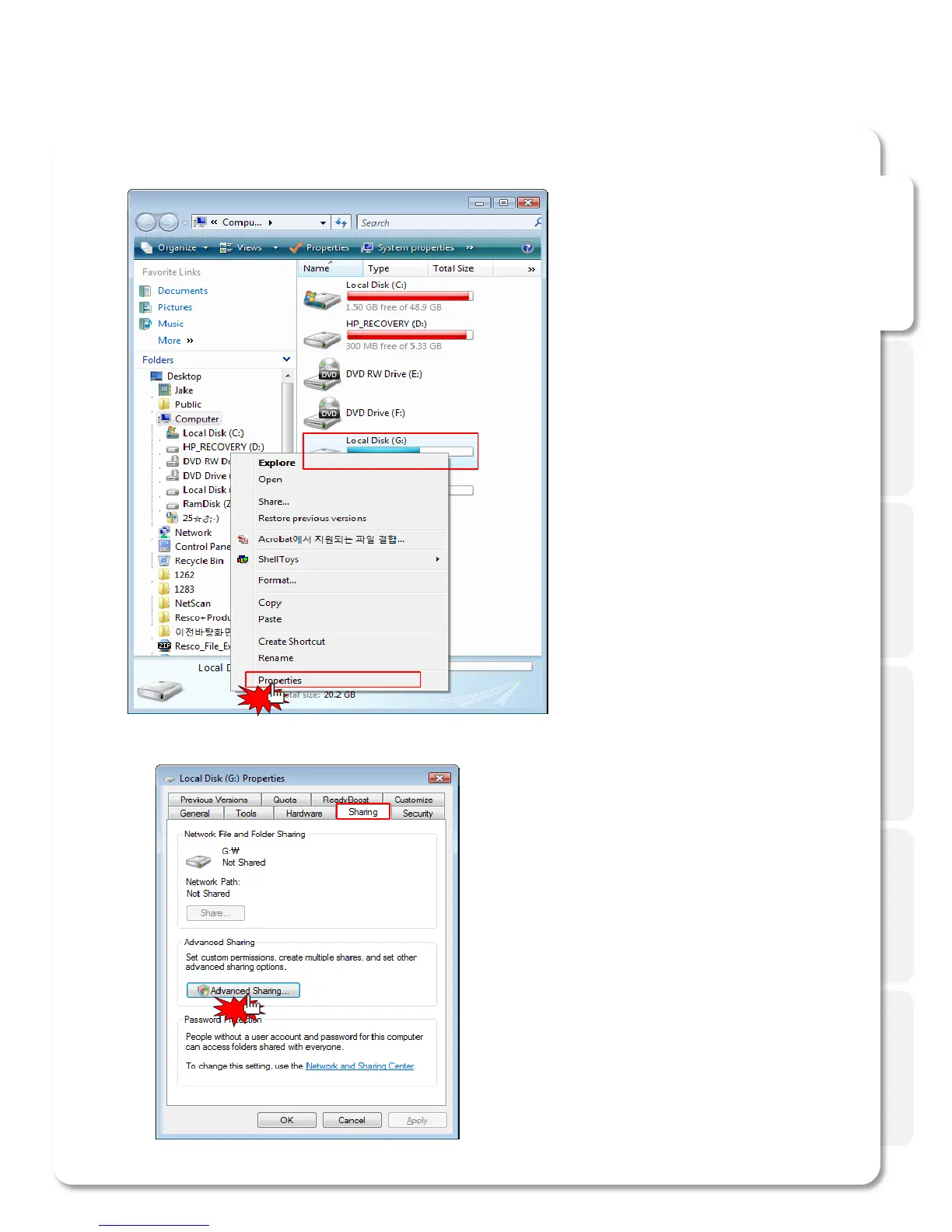 6. Click [Sharing] *Advanced sharing…+.