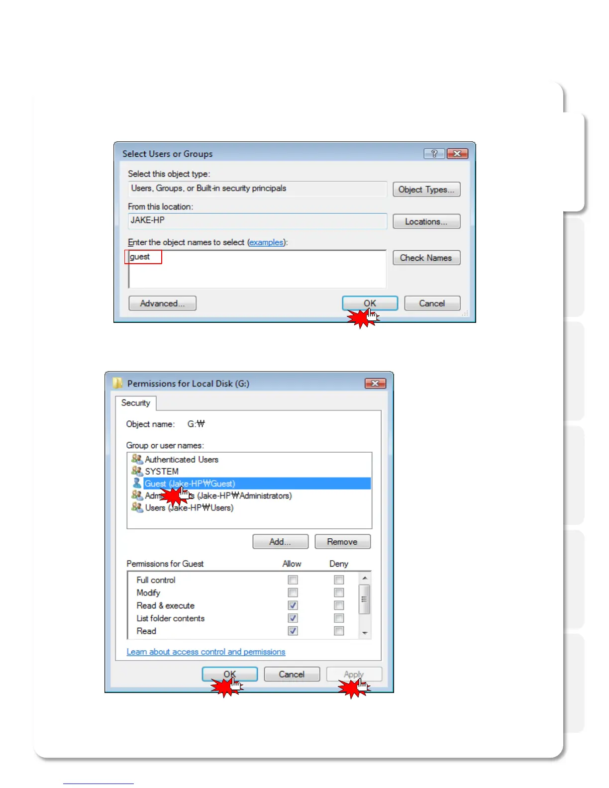 10. Once completed, check if there is “Guest” account or not, then *OK+ [Apply] [OK].