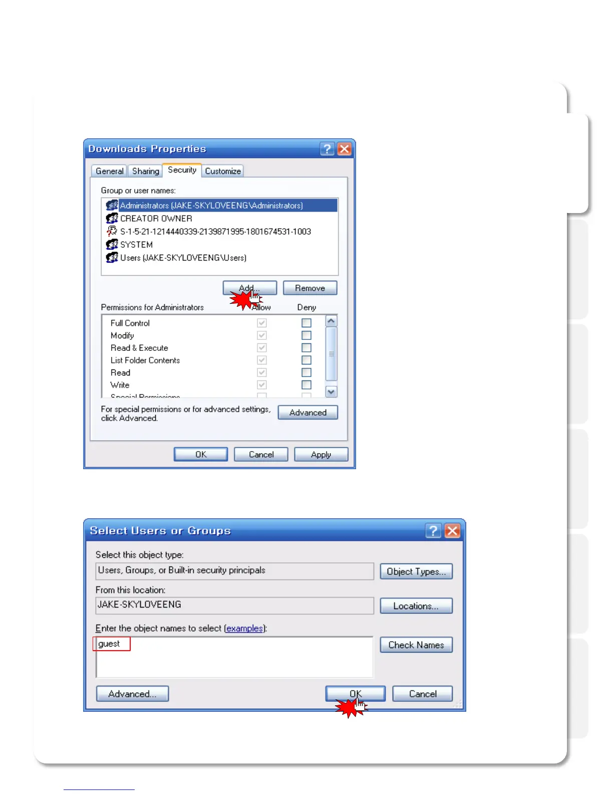 How to configure Folder Sharing Permission in Windows XP