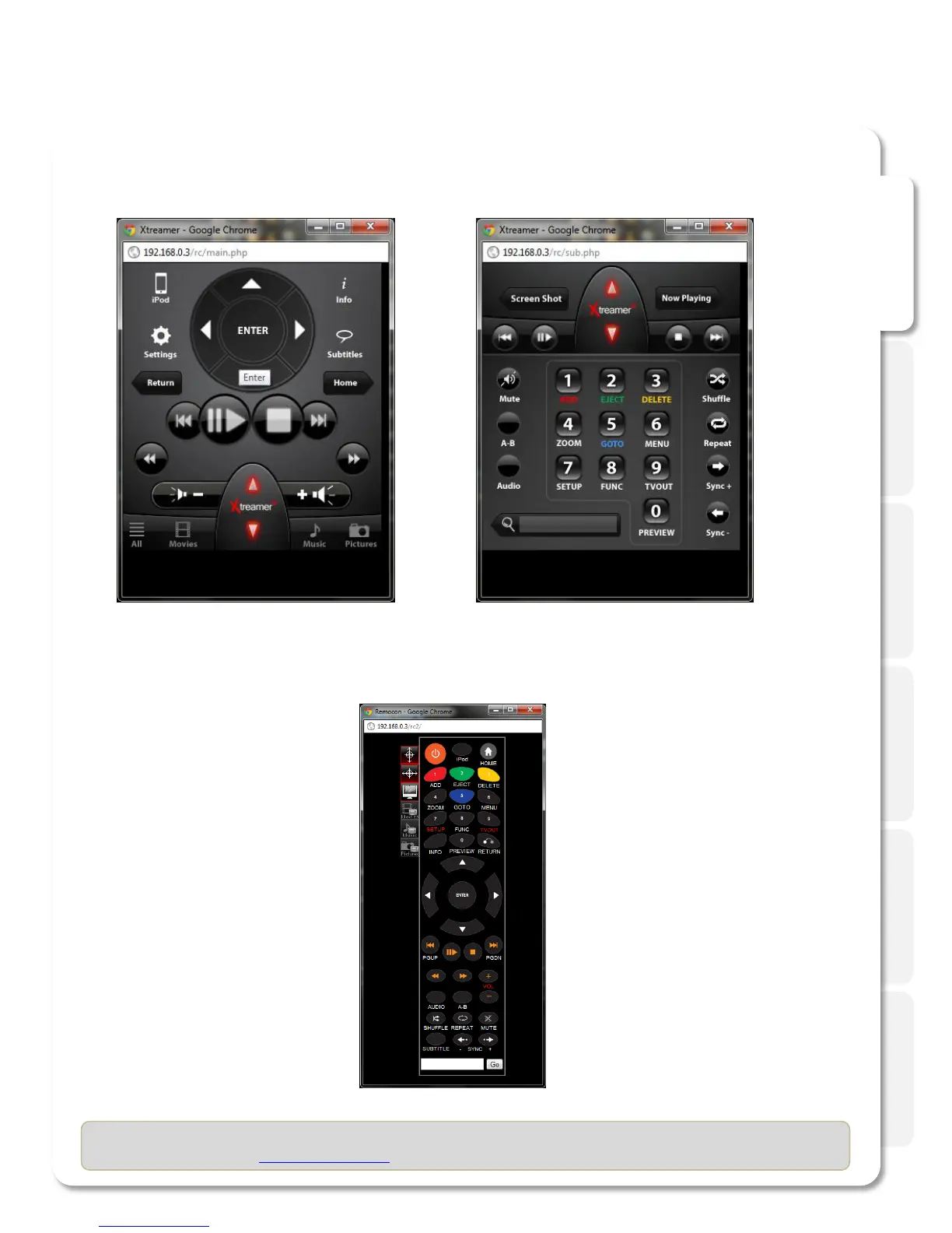 To use Xtreamer virtual remote control applications simply enter Xtreamer’s internal IP into the URL