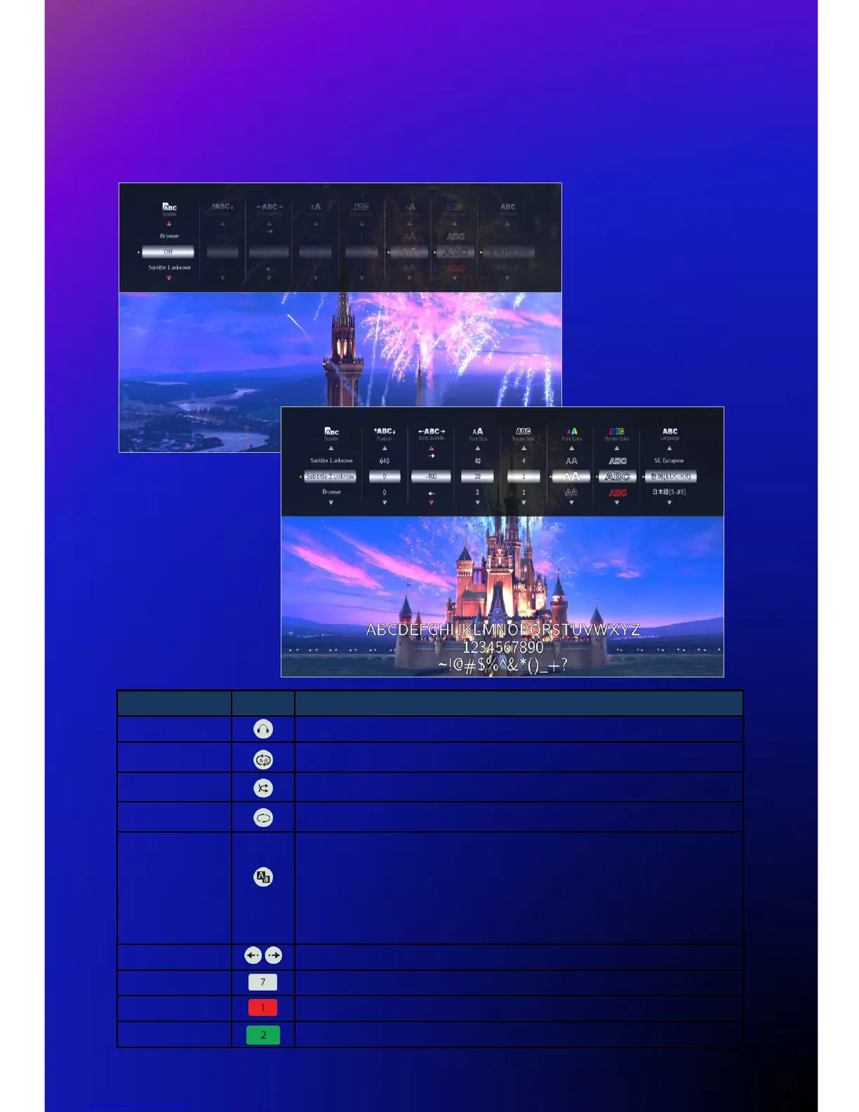 1. Subtitle: Selecting subtitle file; both internal & external subtitle files are supported.