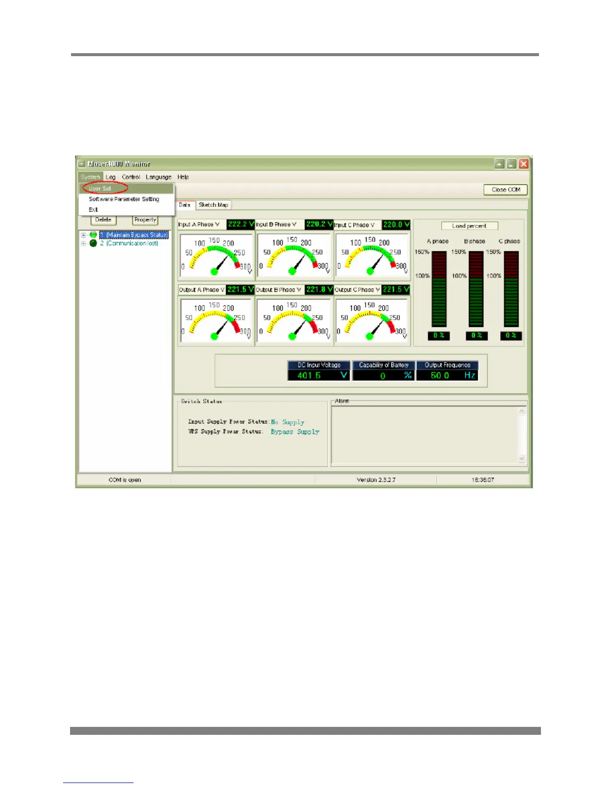 Open Muser4000 software and choose “System” > “User Set