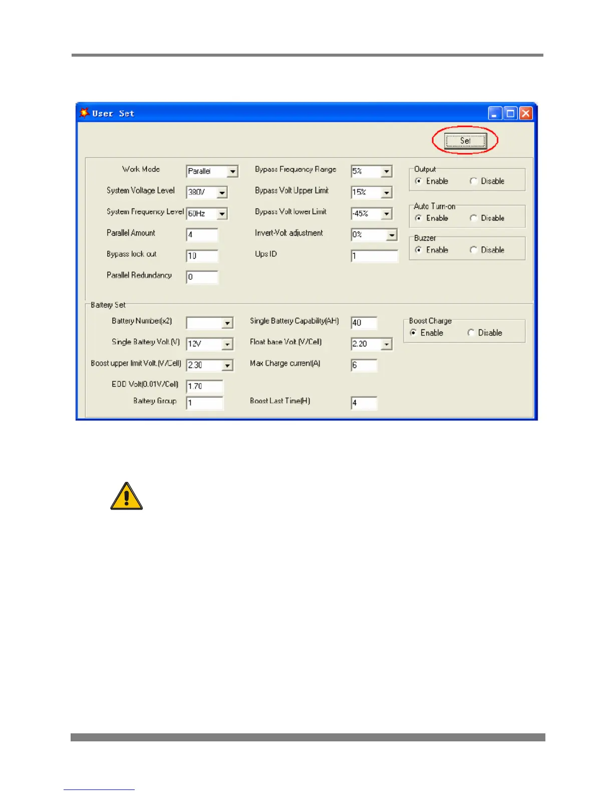 Select “Set” atUser Set” window
