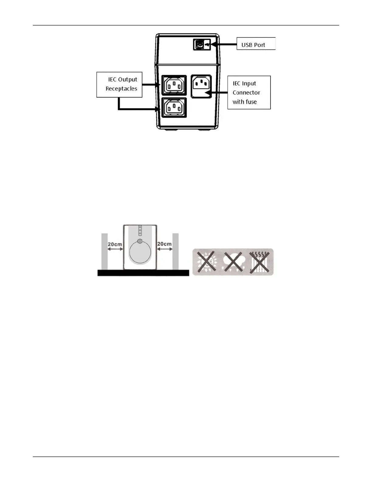 from other units at least 7.8 in (20 cm) to avoid interference. DO NOT operate the UPS where the temperature and