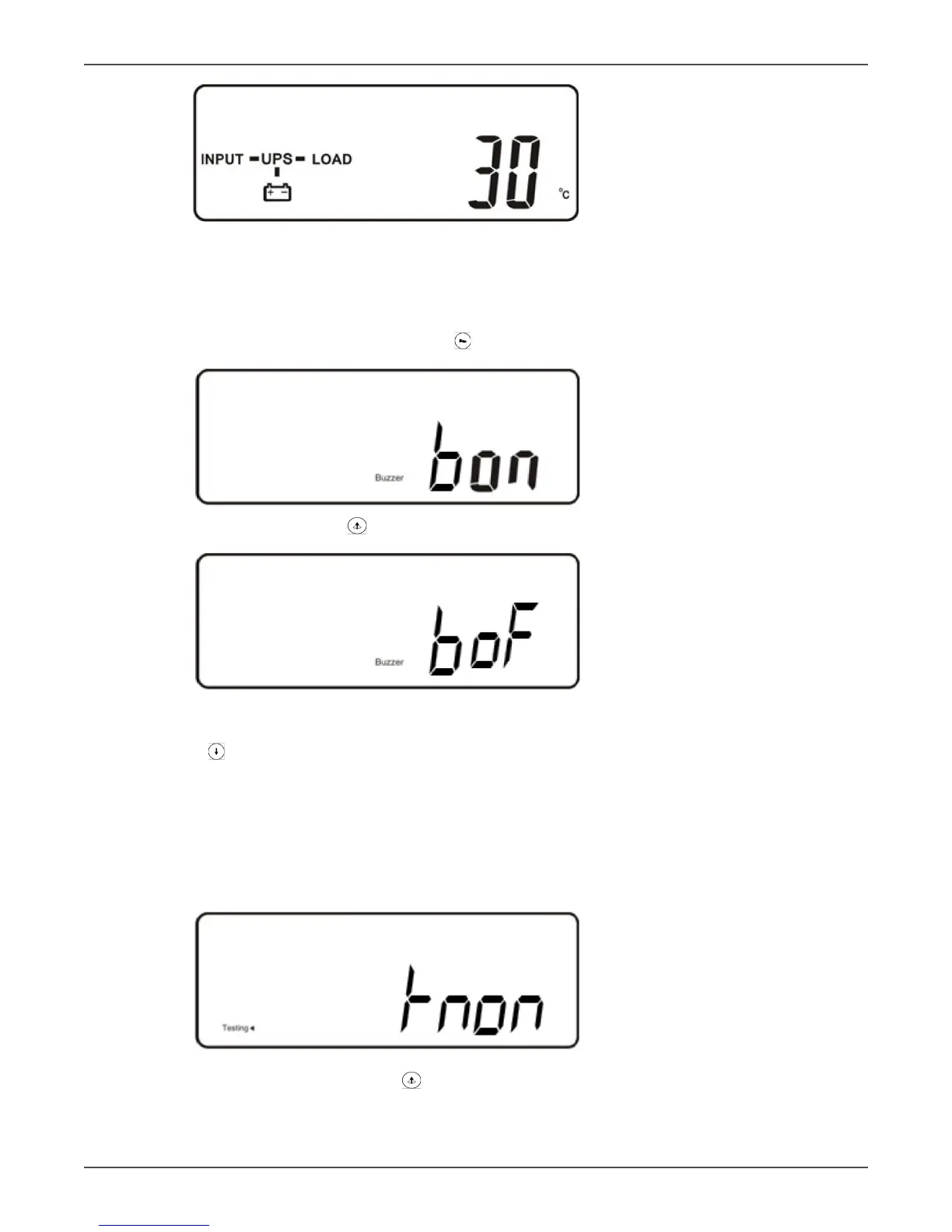 • Press the key to scroll through the UPS sengs. The LCD will display in sequence gure Q1 (buzzer) →
