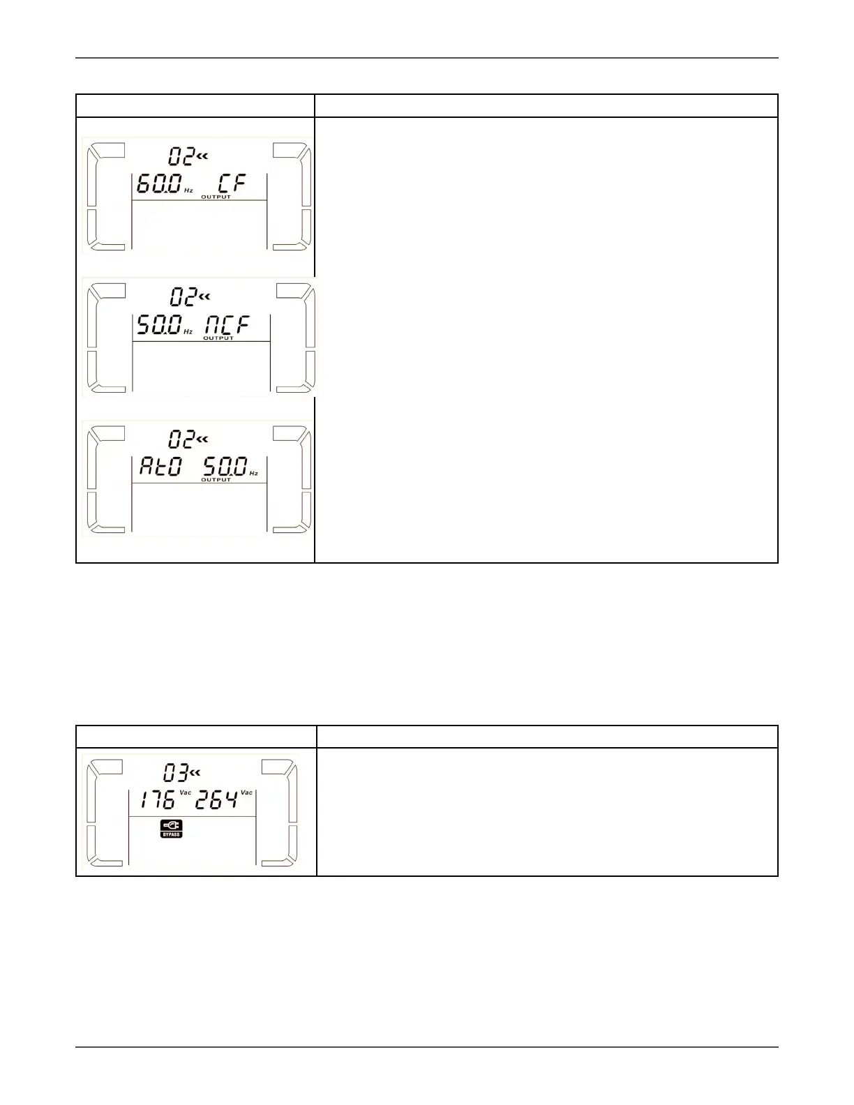 CF: Seng UPS to CVCF mode. If selected, the output frequency will be