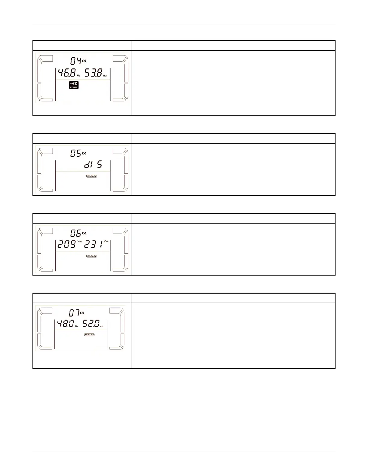 60 Hz system: Seng range is from 56.0Hz to 59.0Hz.