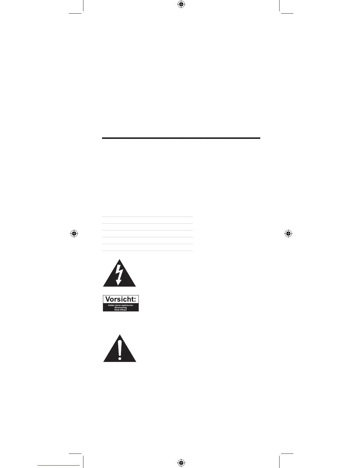 Achtung: Um die Gefahr eines elektrischen Schocks