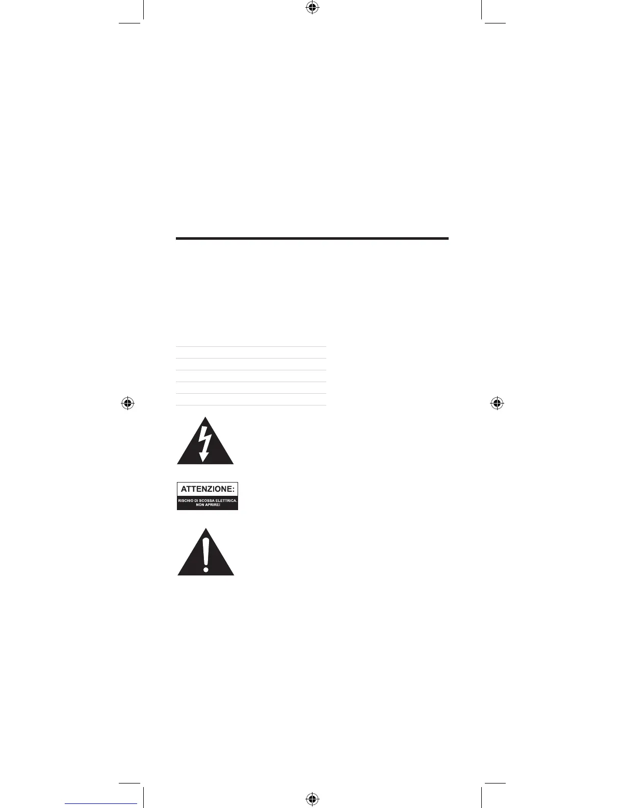 ATTENZIONE: Per evitare scosse elettriche non utilizzare questa