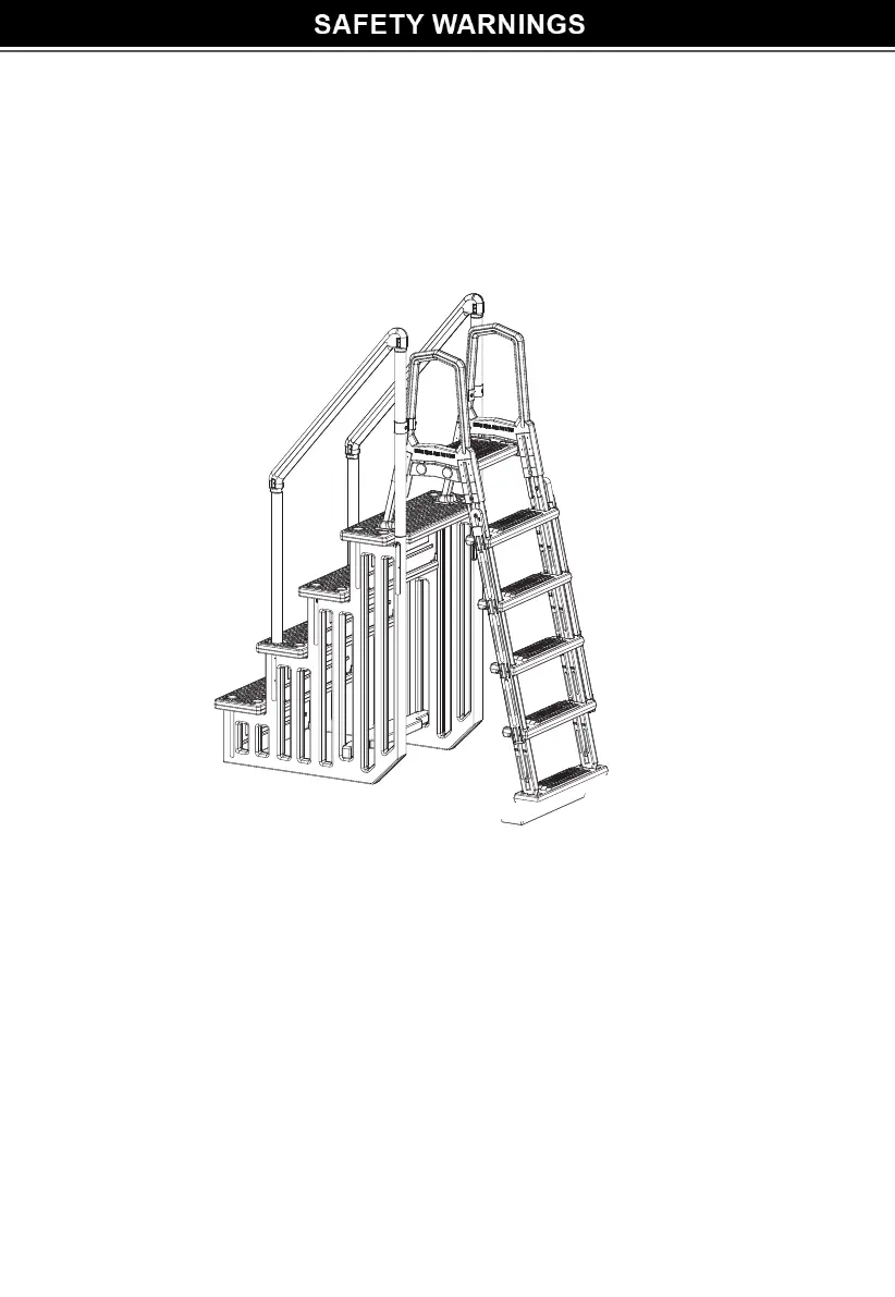 g) To prevent entrapment or drowning DO NOT swim through, behind or around ladder. DO NOT install the ladder at the