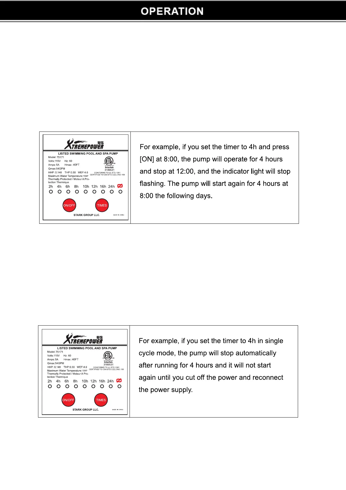 among 2h 4h 6h 8h 10h 12h 16h 24h. Then press the ON/OFF button, the pump starts running. The running