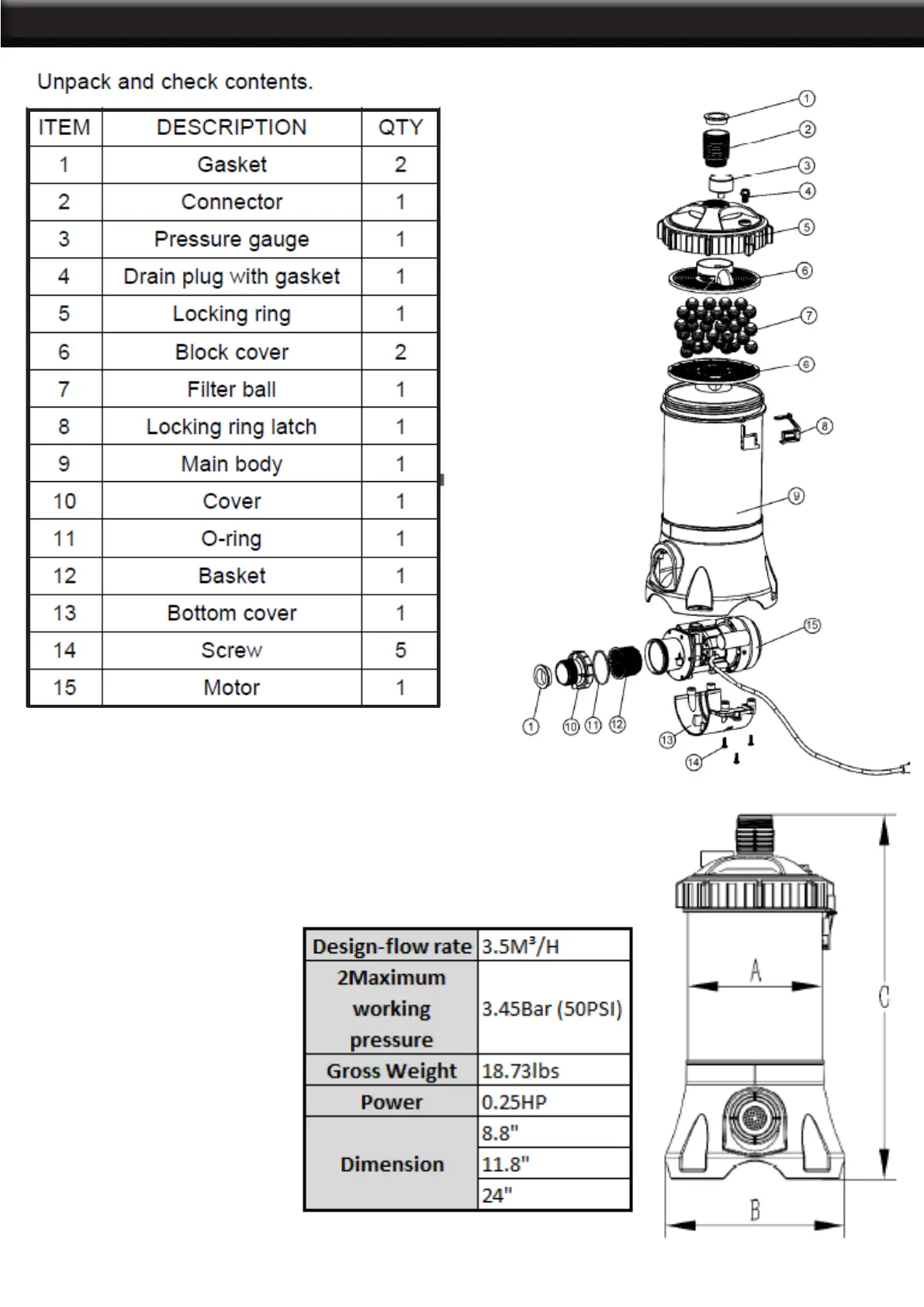 built-in pump. The lter balls can be washed and reused for a long time,also