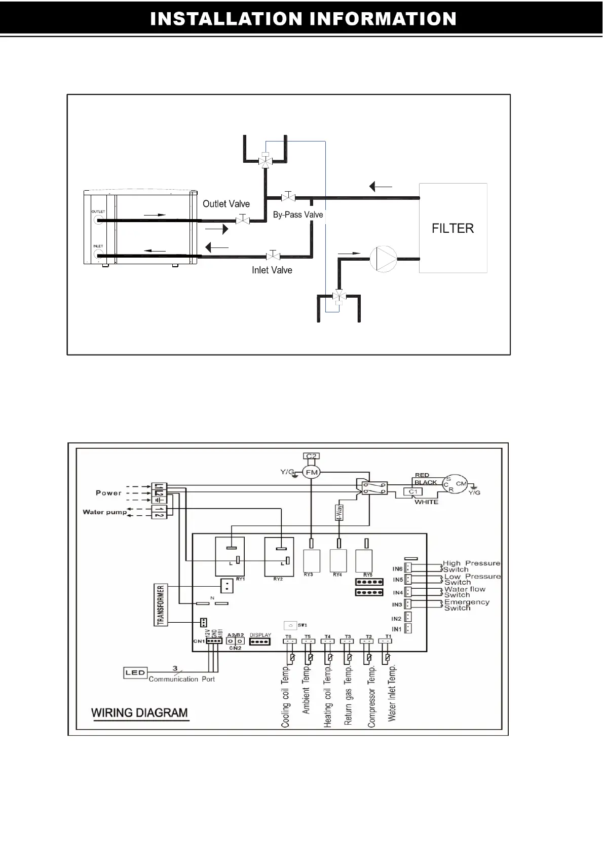 XtremepowerUS 75217 - Installation Information; Diagram for Water Piping Connections; Electric Wiring Diagram