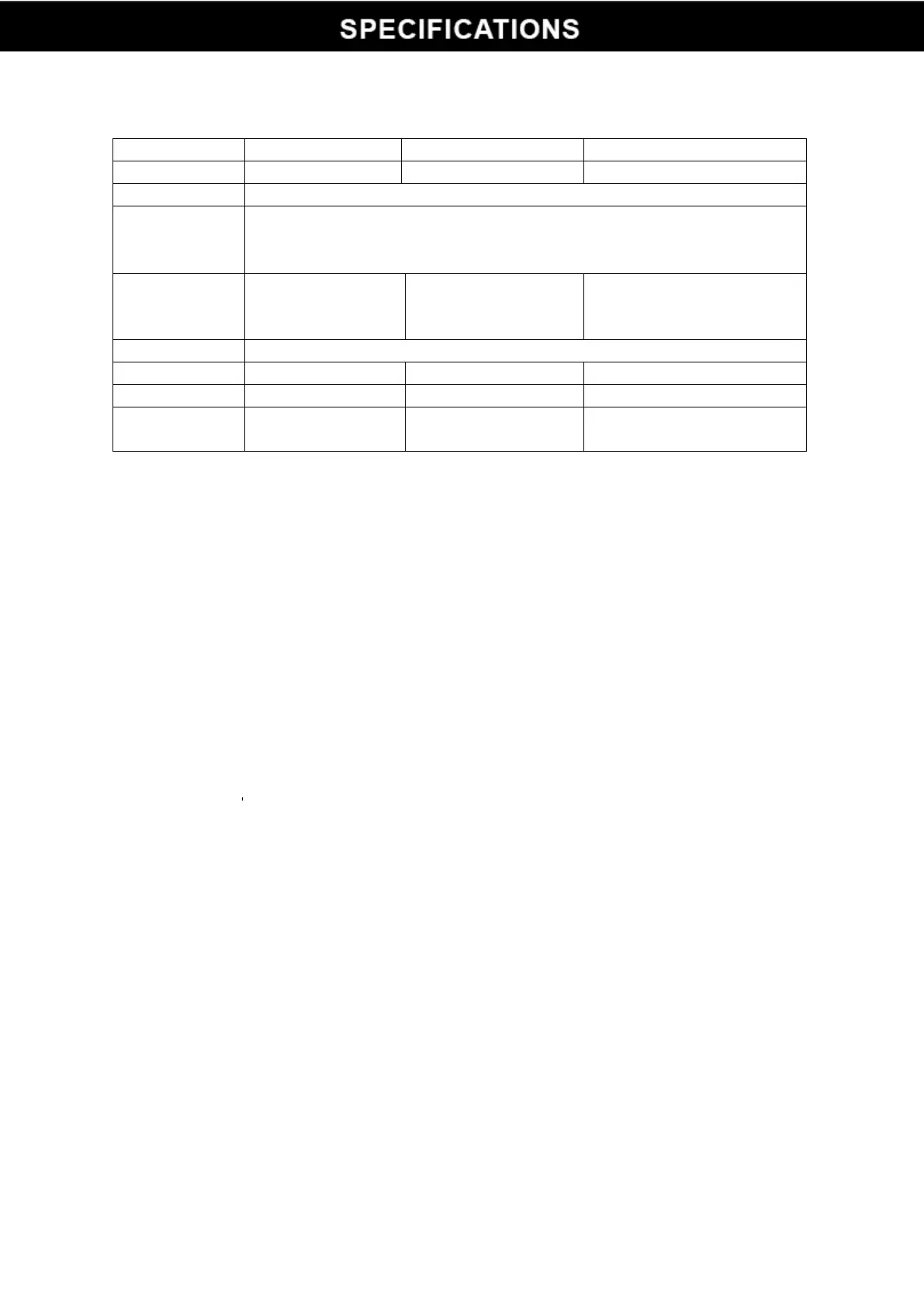 XtremepowerUS 90151 - Specifications; Technical Parameter Table