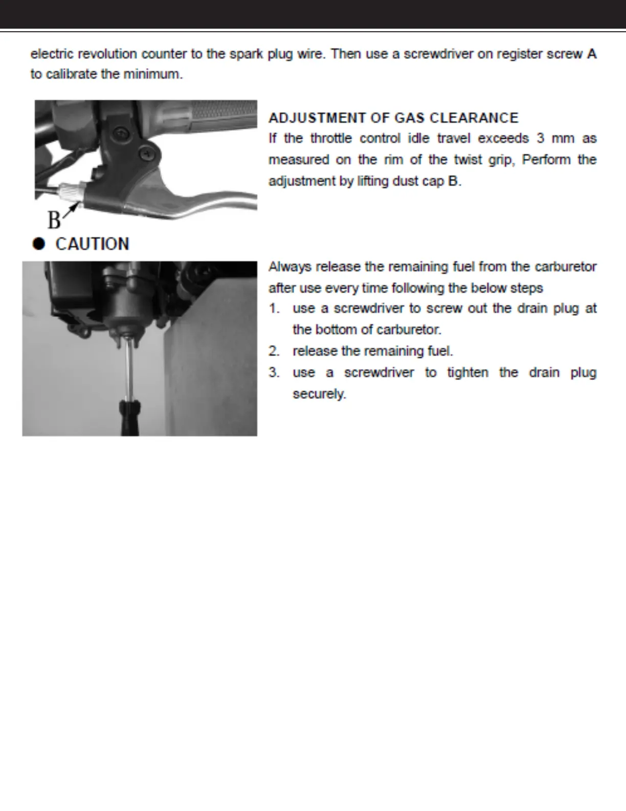 XtremepowerUS 99782 - Throttle Cable Adjustment; Carburetor Fuel Release