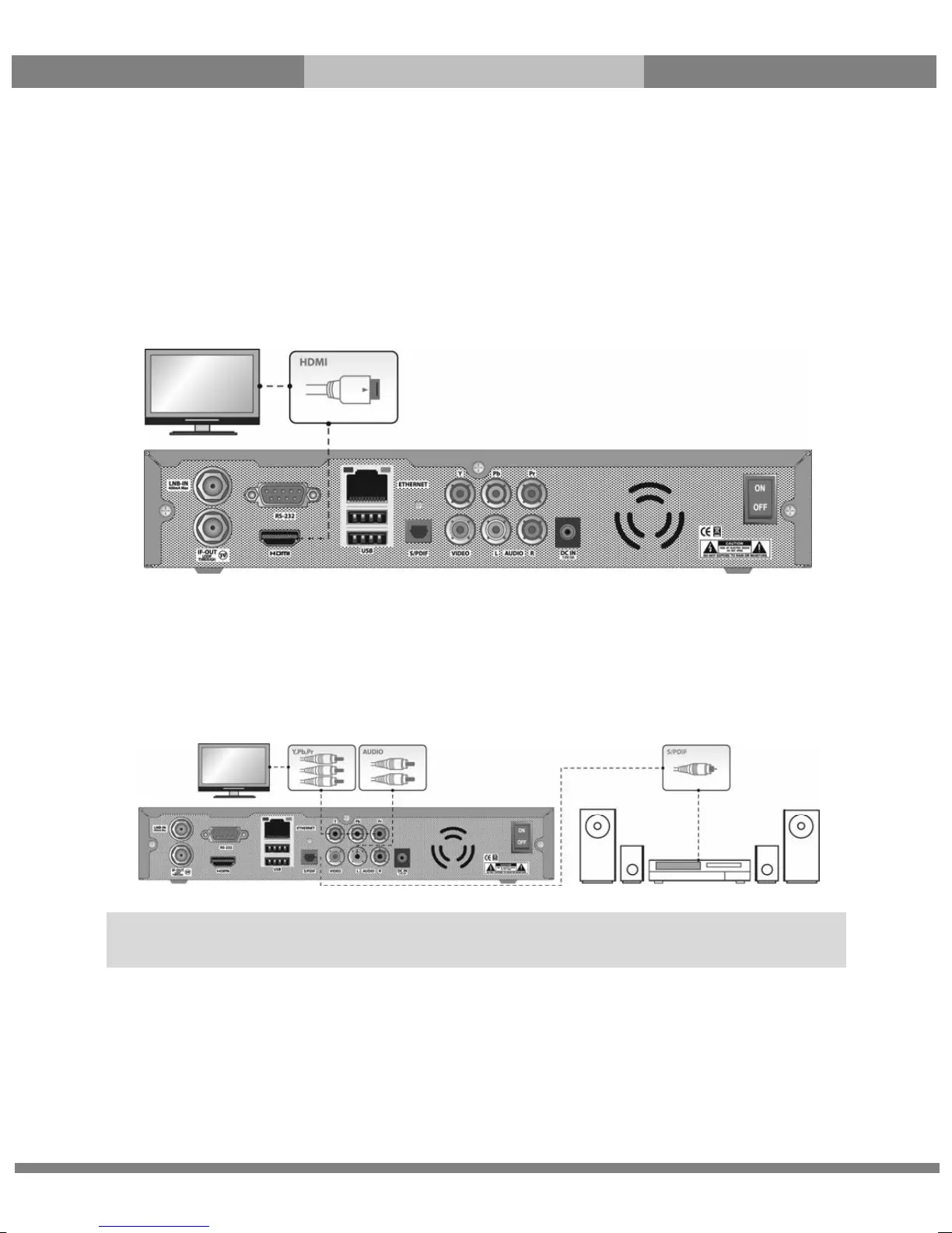 additional audio connection either via RCA cable (Stereo L/R) or S/PDIF as follows.
